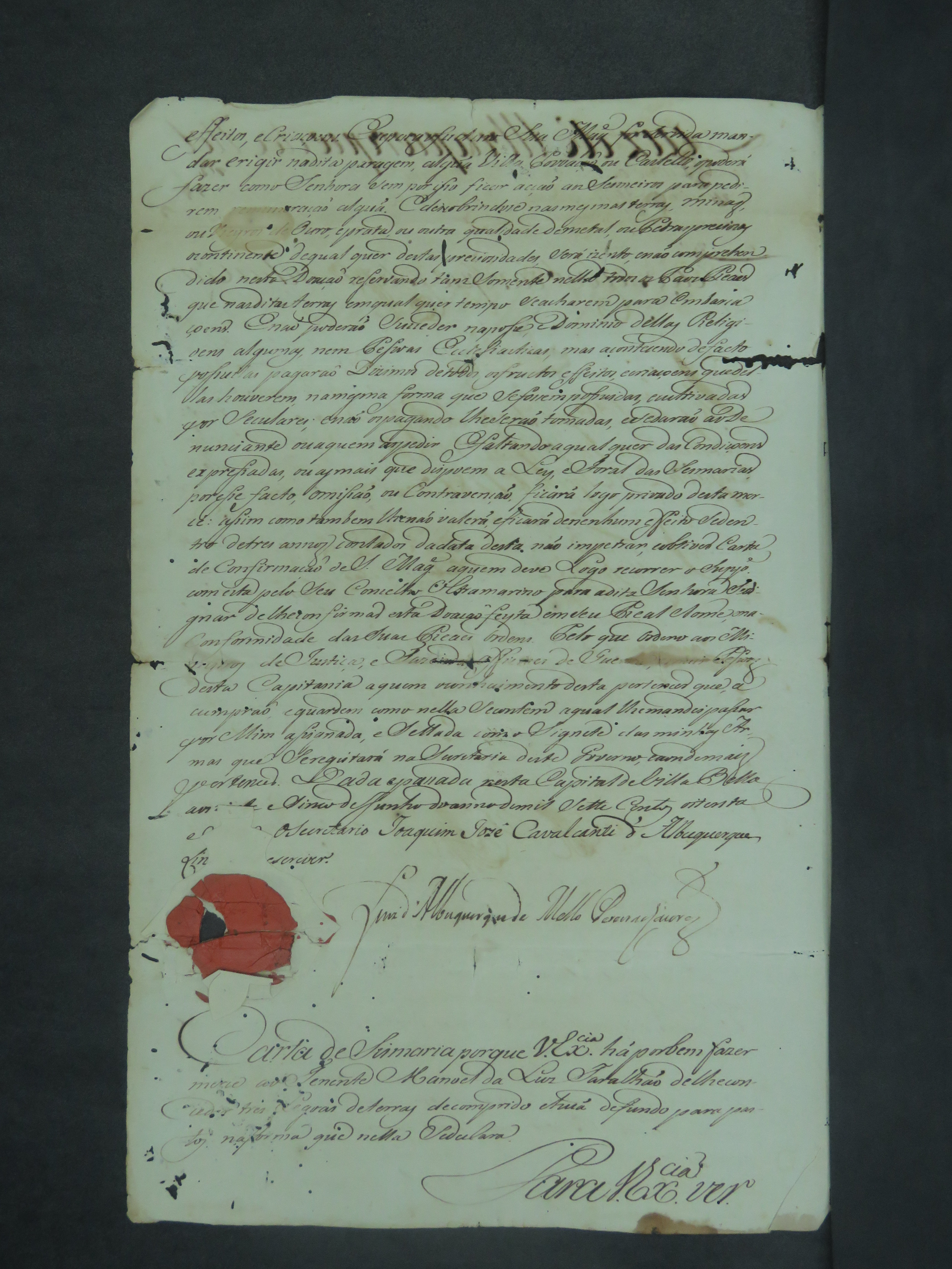 CARTA de Sesmaria concedida pelo Governador e Capitão-General da Capitania de Mato Grosso Luiz de Albuquerque de Melo Pereira e Cáceres para o Tenente Manoel da Luz [Taralhao].