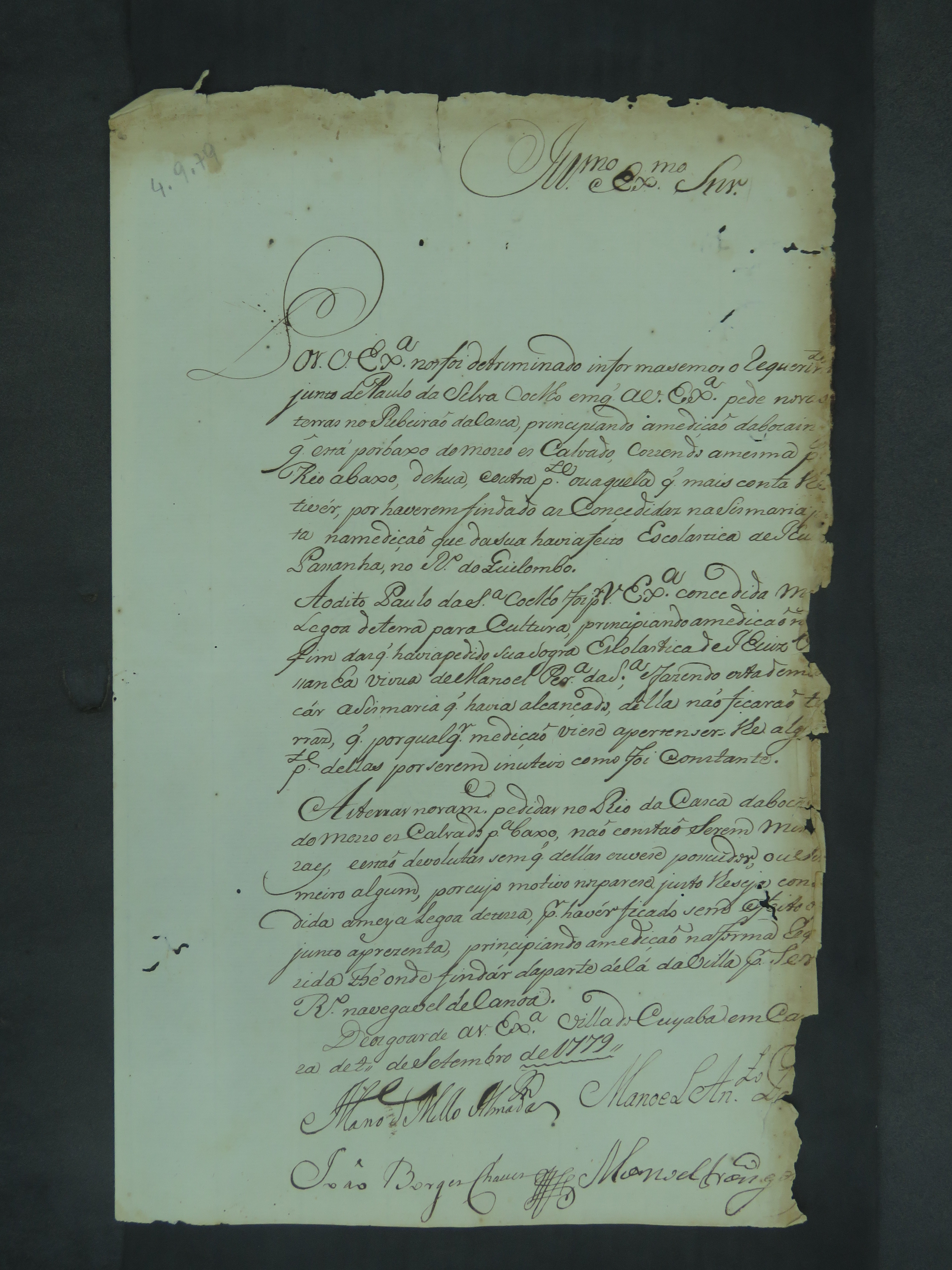 REQUERIMENTO de Paulo da Silva Coelho ao Governador e Capitão-General da Capitania de Mato Grosso Luiz de Albuquerque de Melo Pereira e Cáceres.