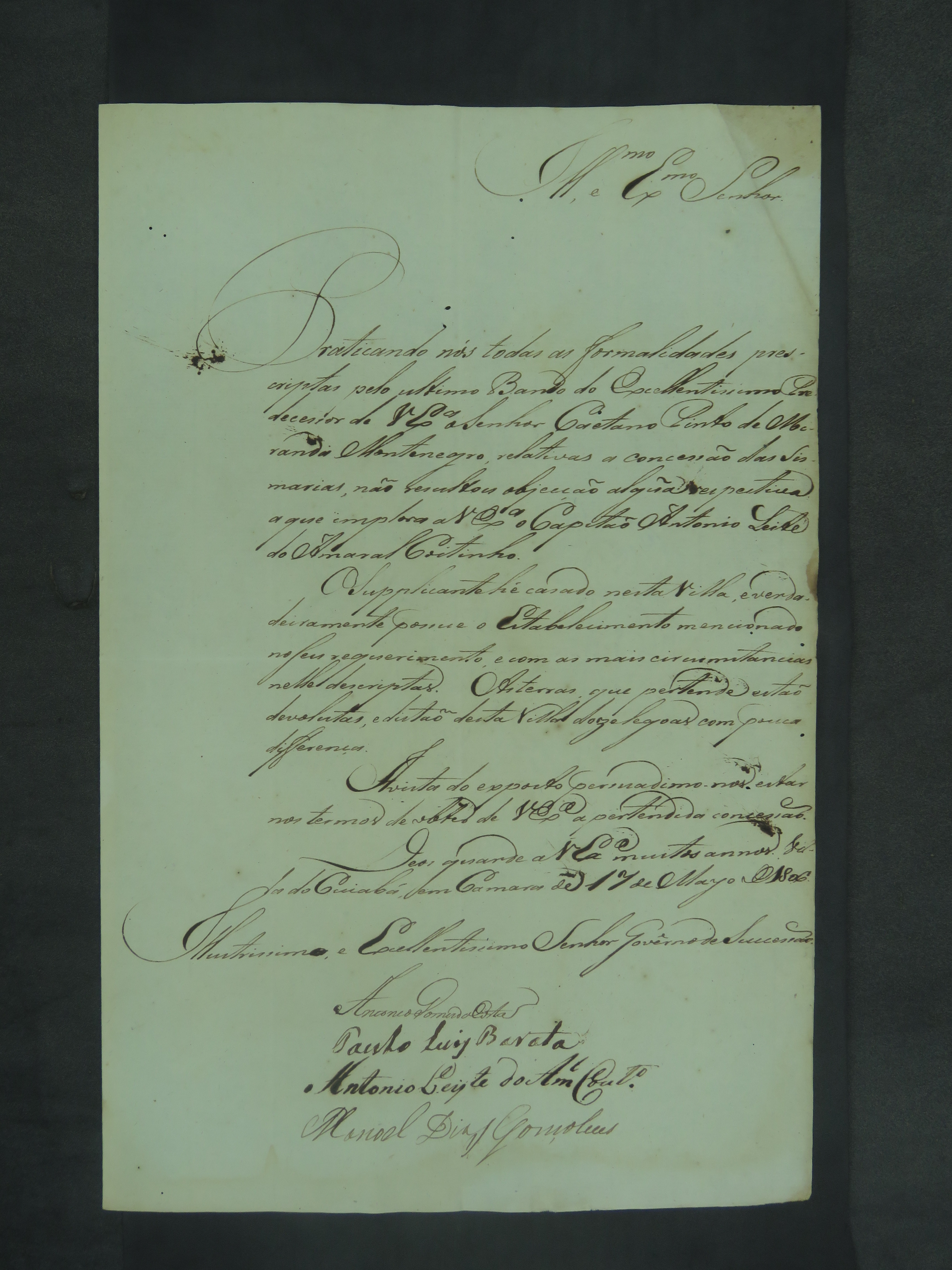 REQUERIMENTO de Antônio Leite do Amaral Coutinho ao Governador e Capitão-General da Capitania de Mato Grosso a Junta Governativa da Capitania de Mato Grosso.