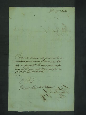 REQUERIMENTO de Antônio Leite do Amaral Coutinho ao Governador e Capitão-General da Capitania de Mato Grosso a Junta Governativa da Capitania de Mato Grosso.
