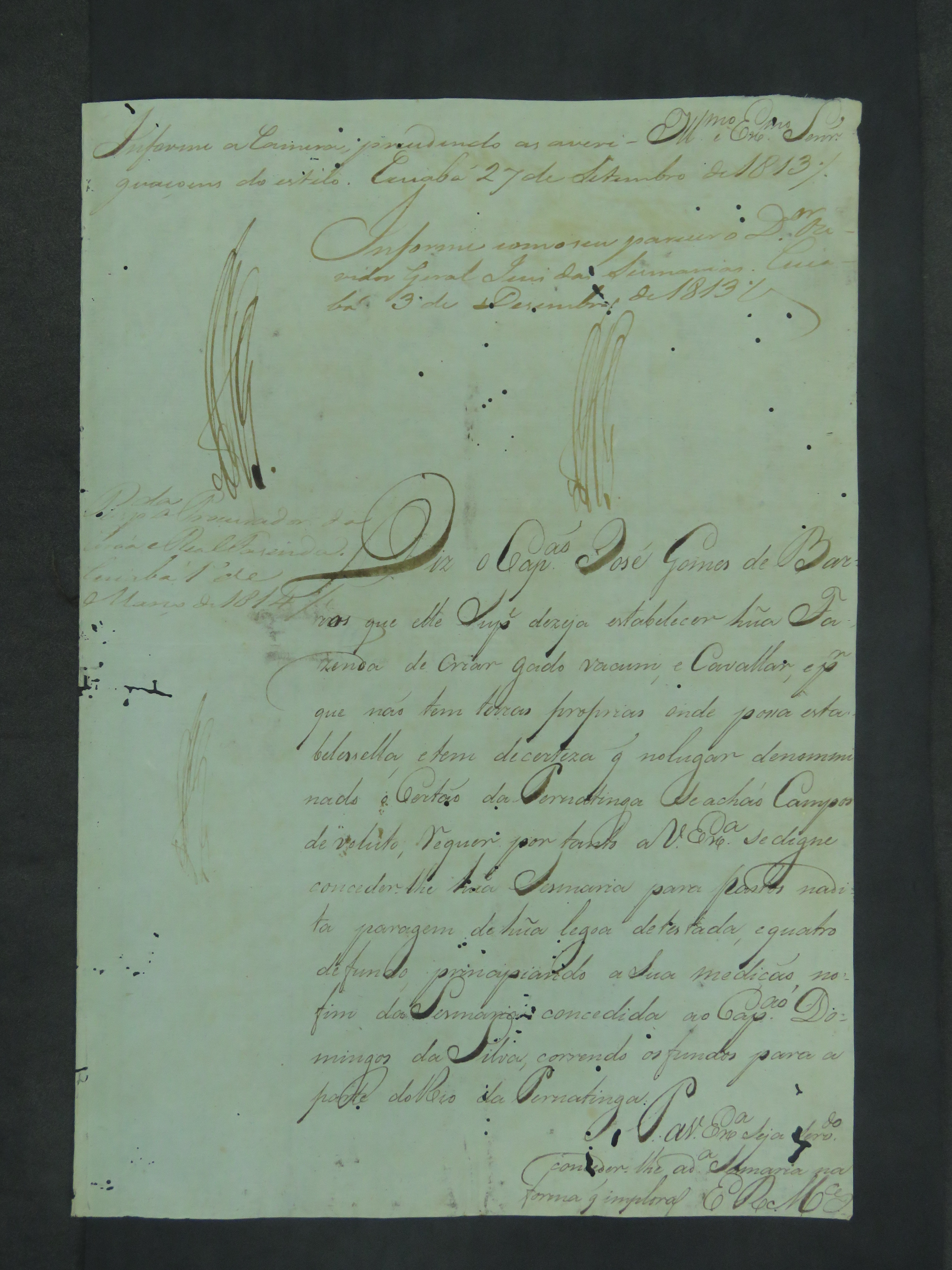 REQUERIMENTO do Capitão José Gomes de Barros ao Governador e Capitão-General da Capitania de Mato Grosso João Carlos Augusto d´Oeynhausen e Gravemberg.