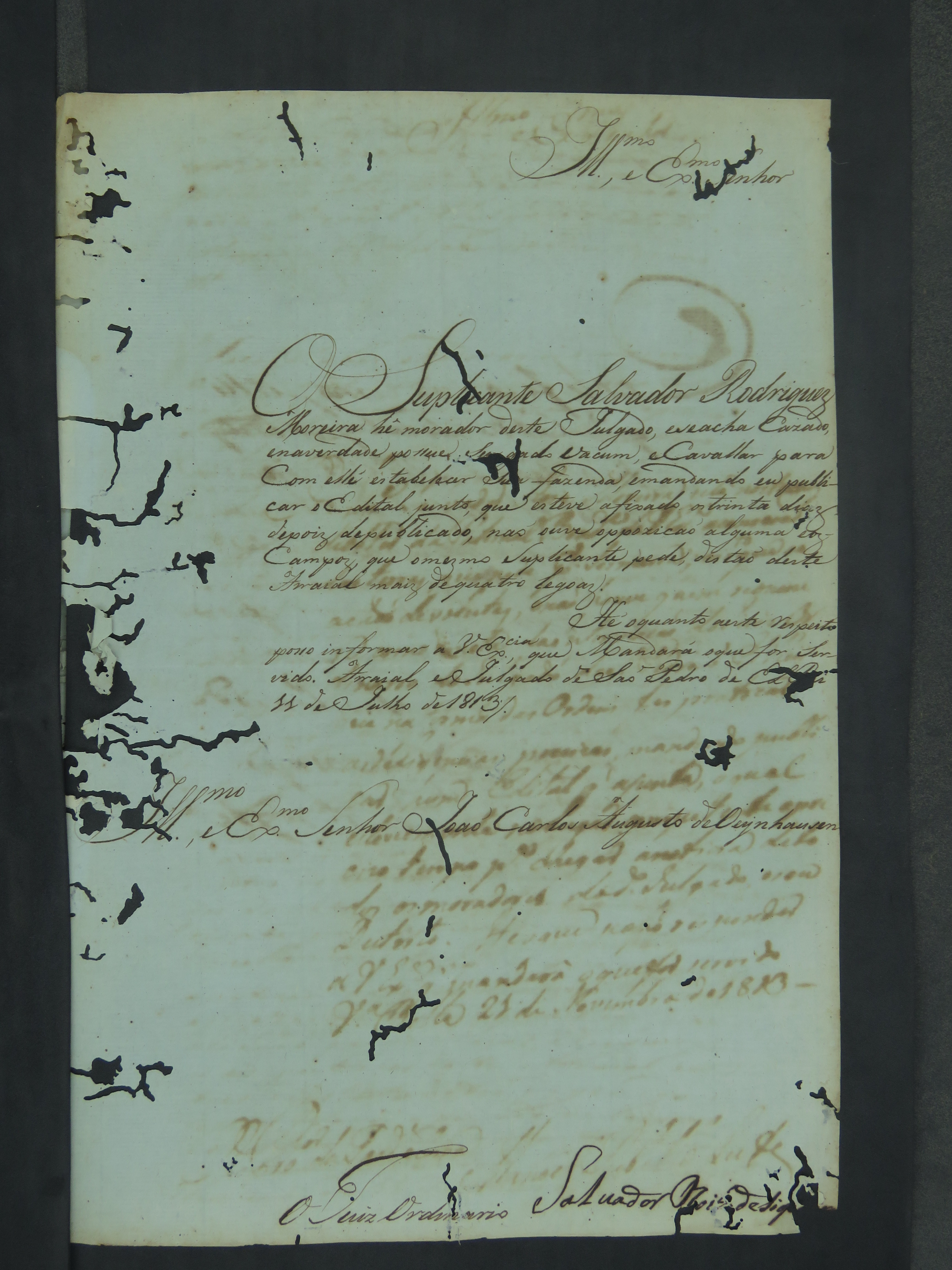 REQUERIMENTO de Salvador Rodrigues Moreira para o Governador e Capitão-General da Capitania de MatoGrosso João Carlos Augusto de Oeynhausen e Gravemberg.