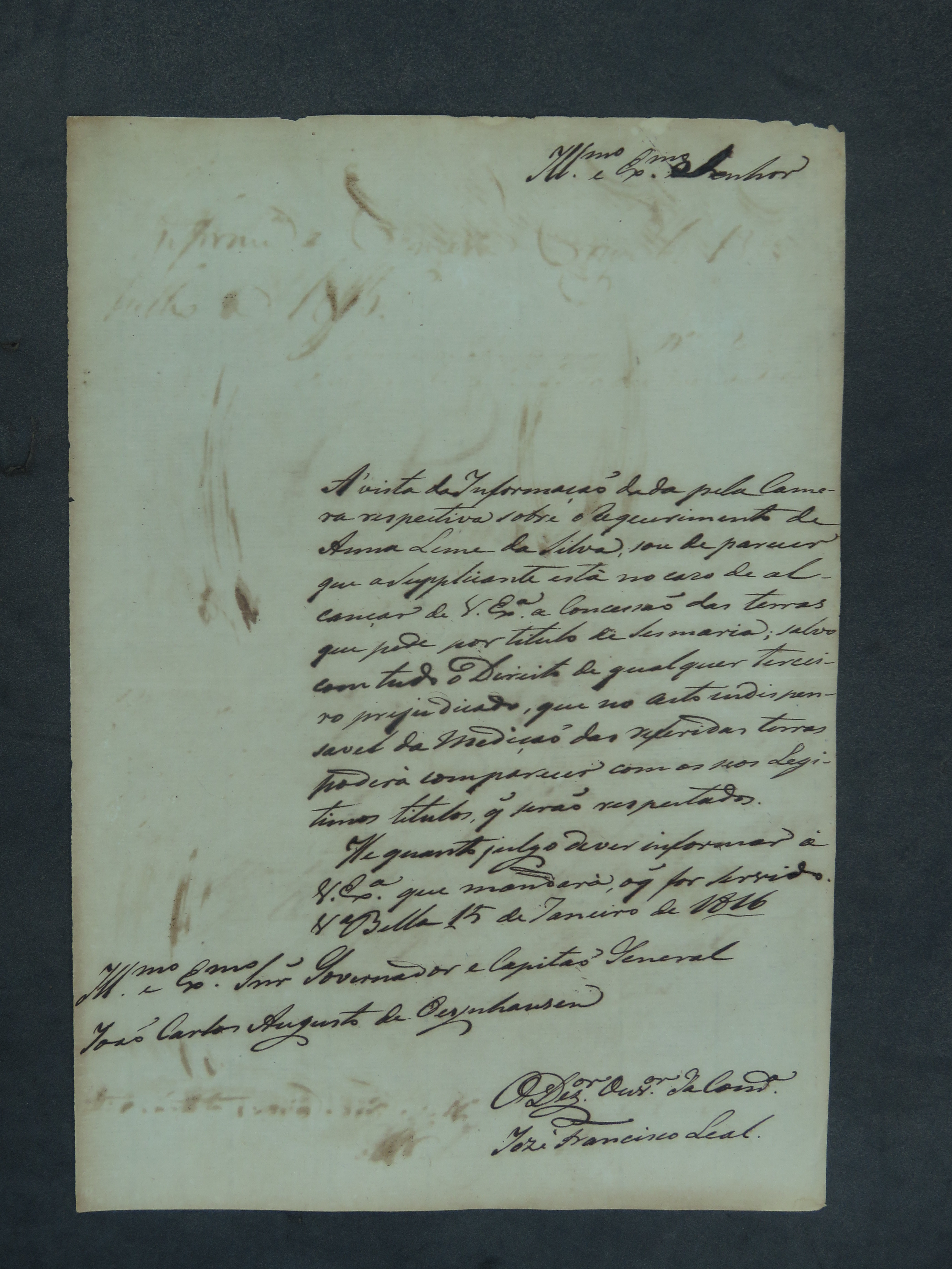 REQUERIMENTO de Anna da Silva Leme ao Governador e Capitão-General da Capitania de Mato Grosso João Carlos Augusto D'Oeynhausen e Gravemberg.
