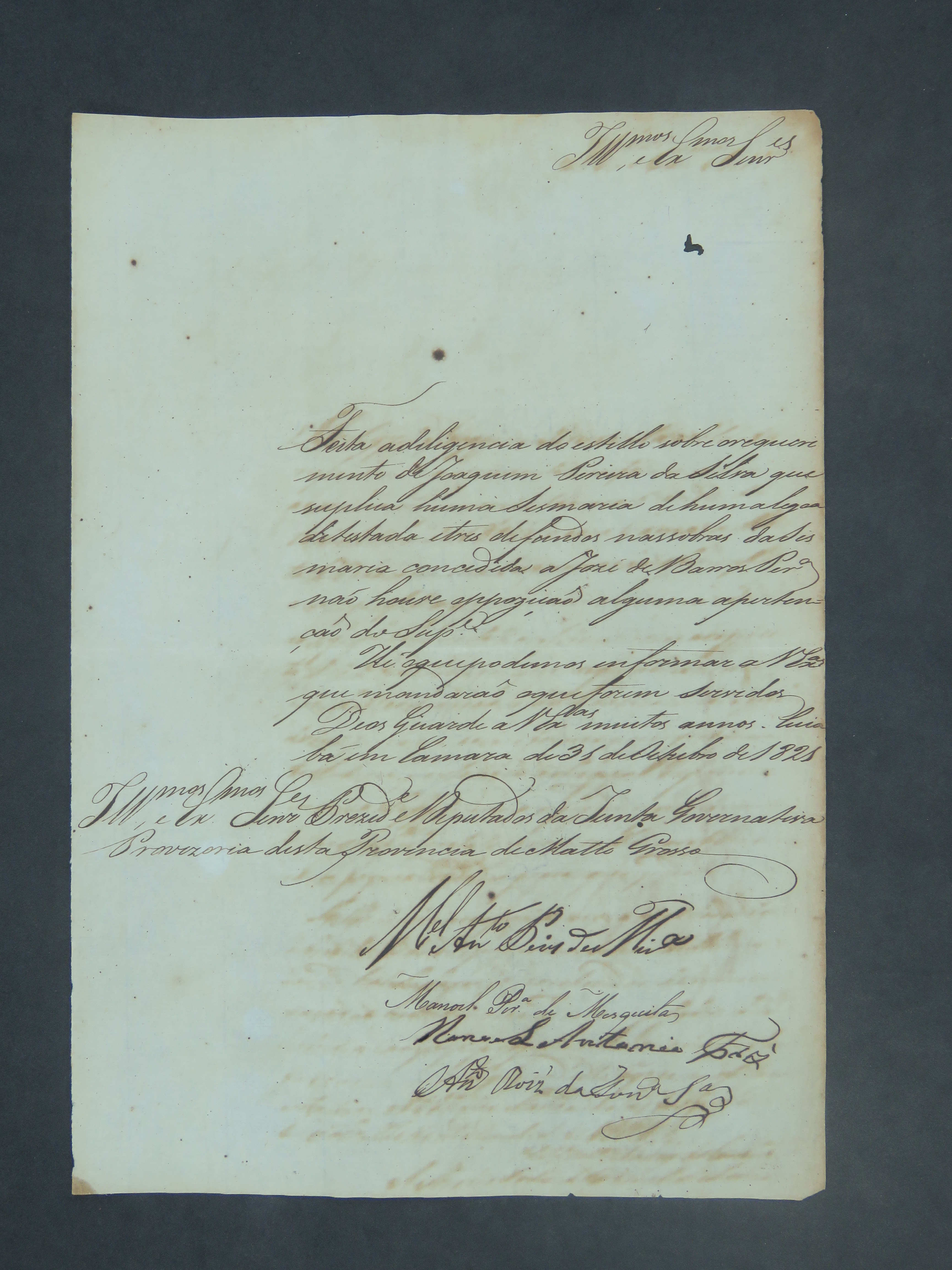 REQUERIMENTO de Joaquim Pereira da Silva ao Governador e Capitão-General da Capitania de Mato Grosso Francisco de Paula Magessi Tavares de Carvalho.