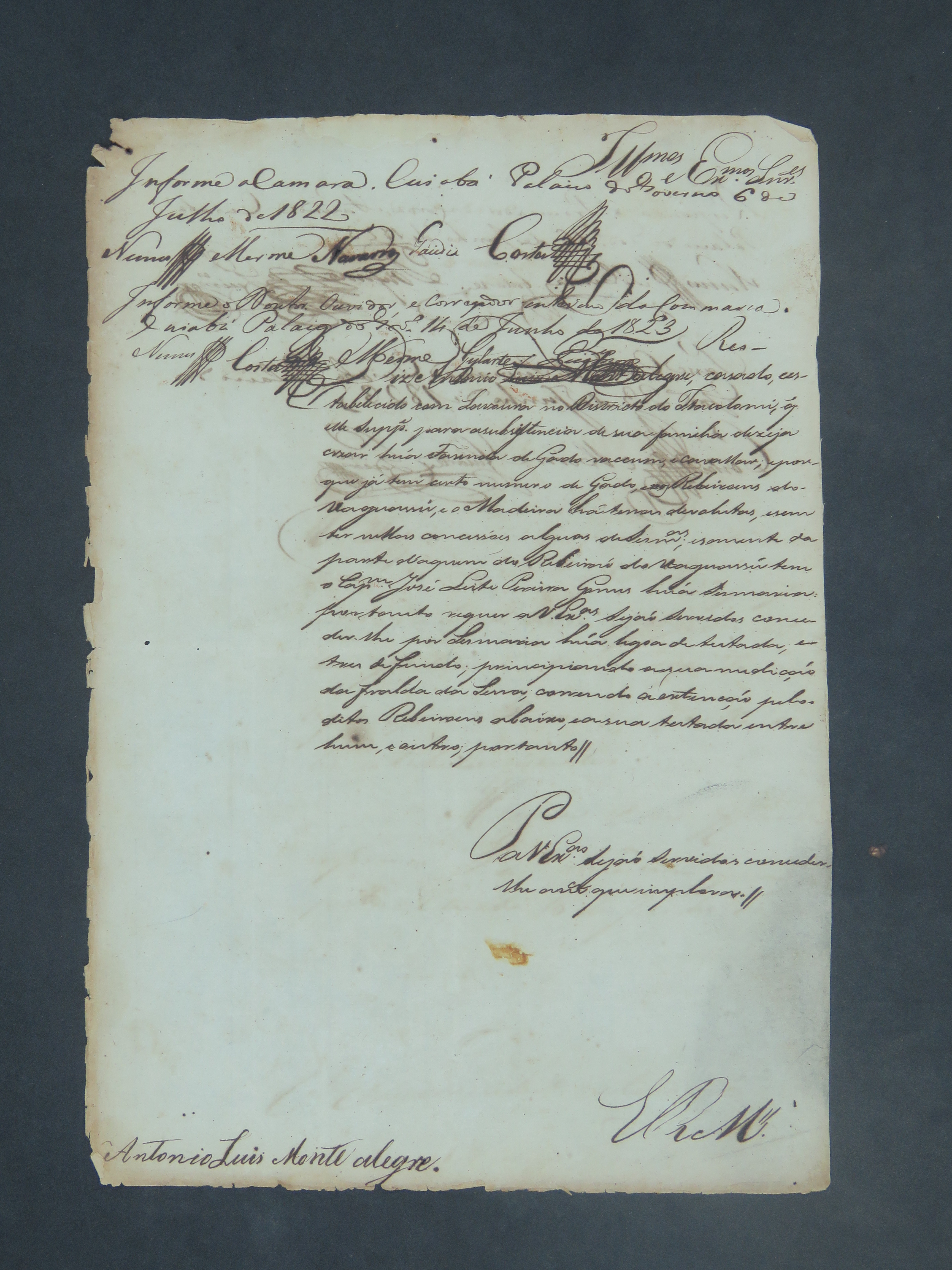 REQUERIMENTO de Antônio Luís de Monte Alegre à Junta Governativa Provisória.