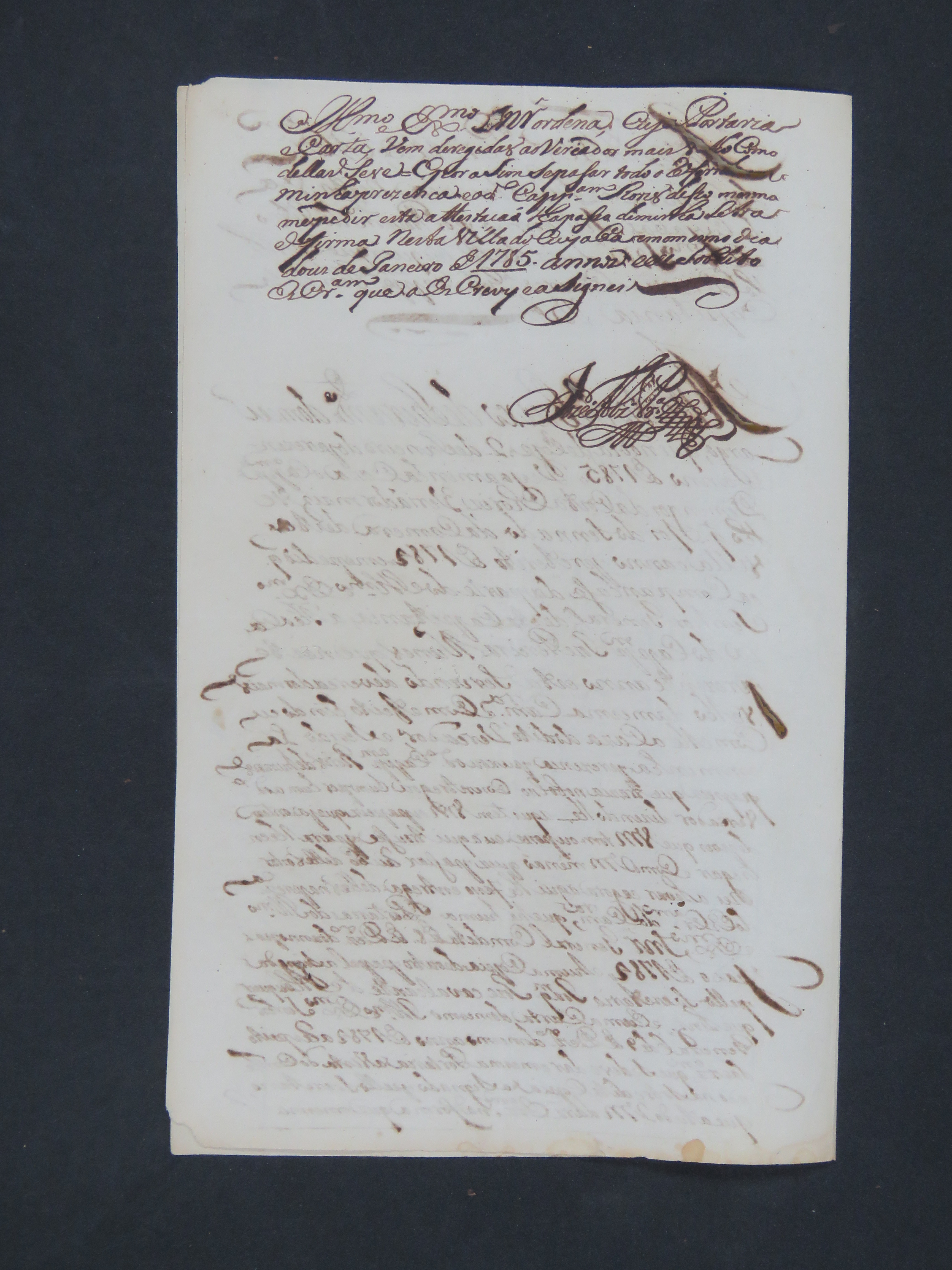 ATESTADO passado pelo Escrivão da Câmara, José Alves Pereira, comprovando a entrega de papéis pelo vereador mais velho do Senado da Câmara, em 1784, ao atual vereador mais velho.