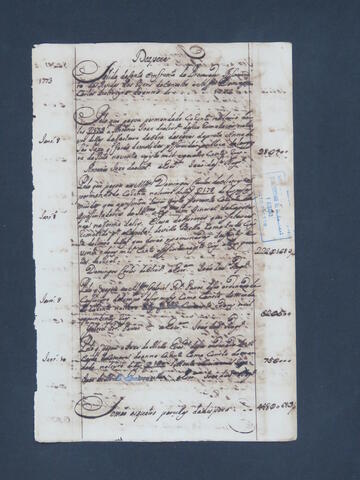 CARTA dos Vereadores da Câmara da Vila do Cuiabá ao Governador e Capitão-General da Capitania de Mato Grosso, Luís de Albuquerque de Melo Pereira e Cáceres, encaminhando os mapas das contas da receita e despesa da Câmara relativos aos anos de 1772 e 1773.