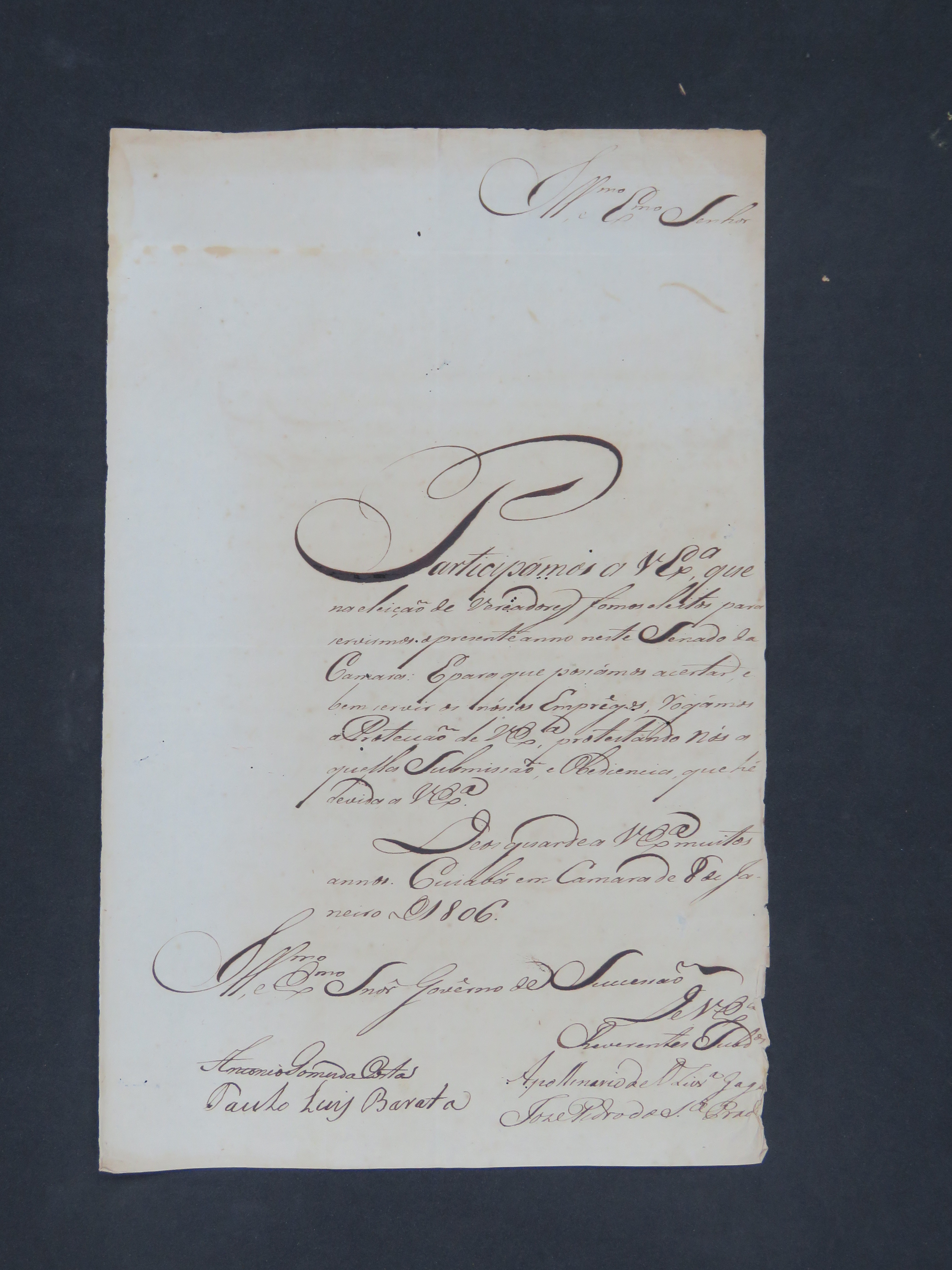 CARTA dos Vereadores da Câmara a Terceira Junta Governativa da Capitania de Mato Grosso, informando sobre a eleição ocorrida na Câmara.