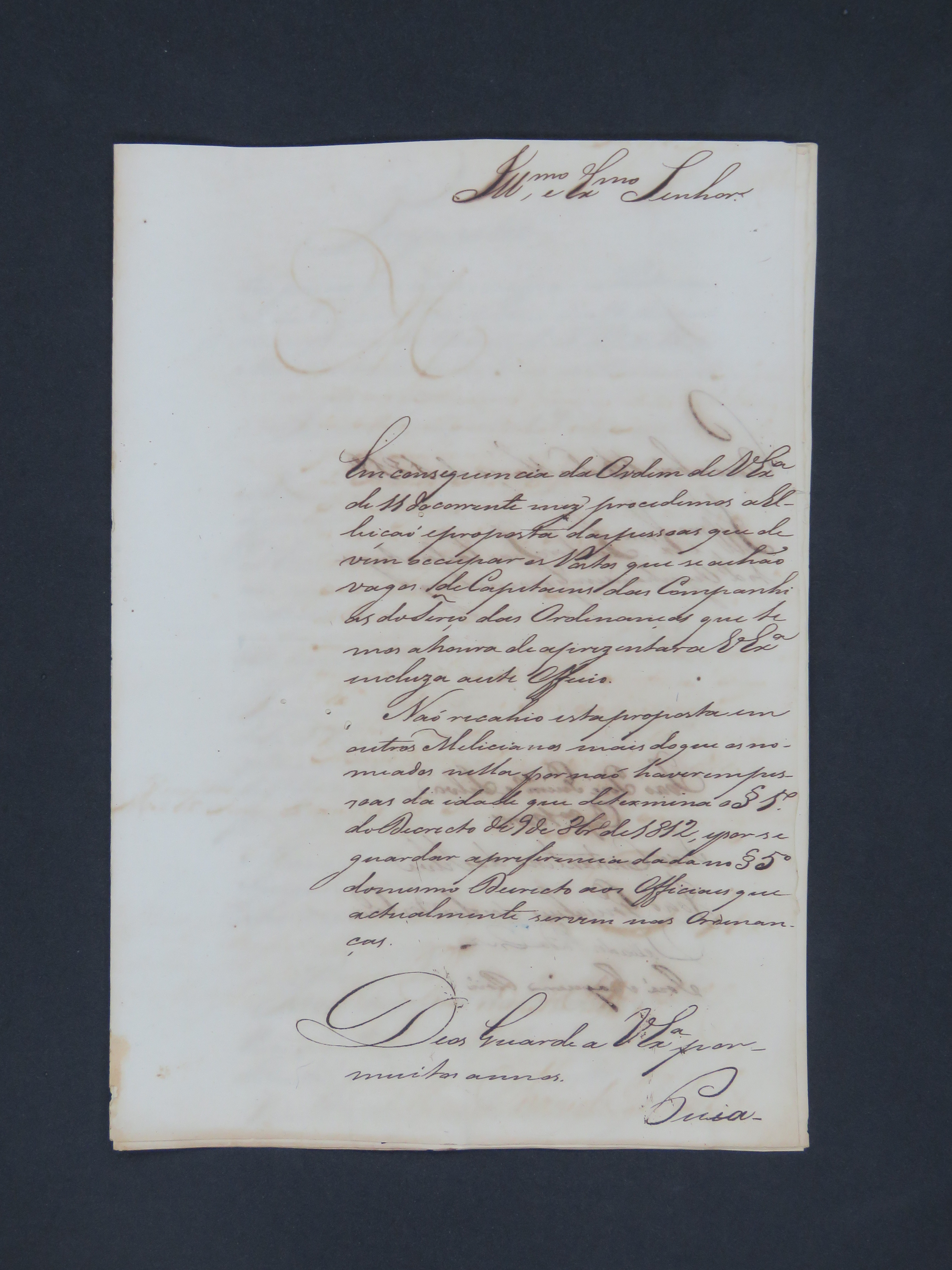CARTA dos Vereadores da Câmara ao Governador e Capitão-General da Capitania de Mato Grosso, João Carlos Augusto D'Oeynhausen e Gravemberg, encaminhando a proposta de pessoas que devem ocupar os postos vagos nas Companhias do Terço das Ordenanças.