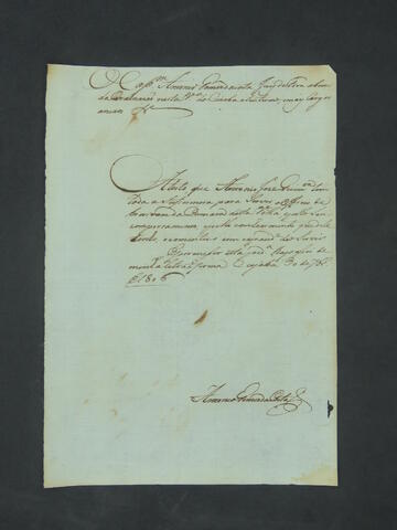 ATESTADO do Juiz de Fora por Ordenação, Capitão Antônio Gomes da Costa, atestando que Antônio José Guimarães ocupa o ofício de Escrivão da Câmara.