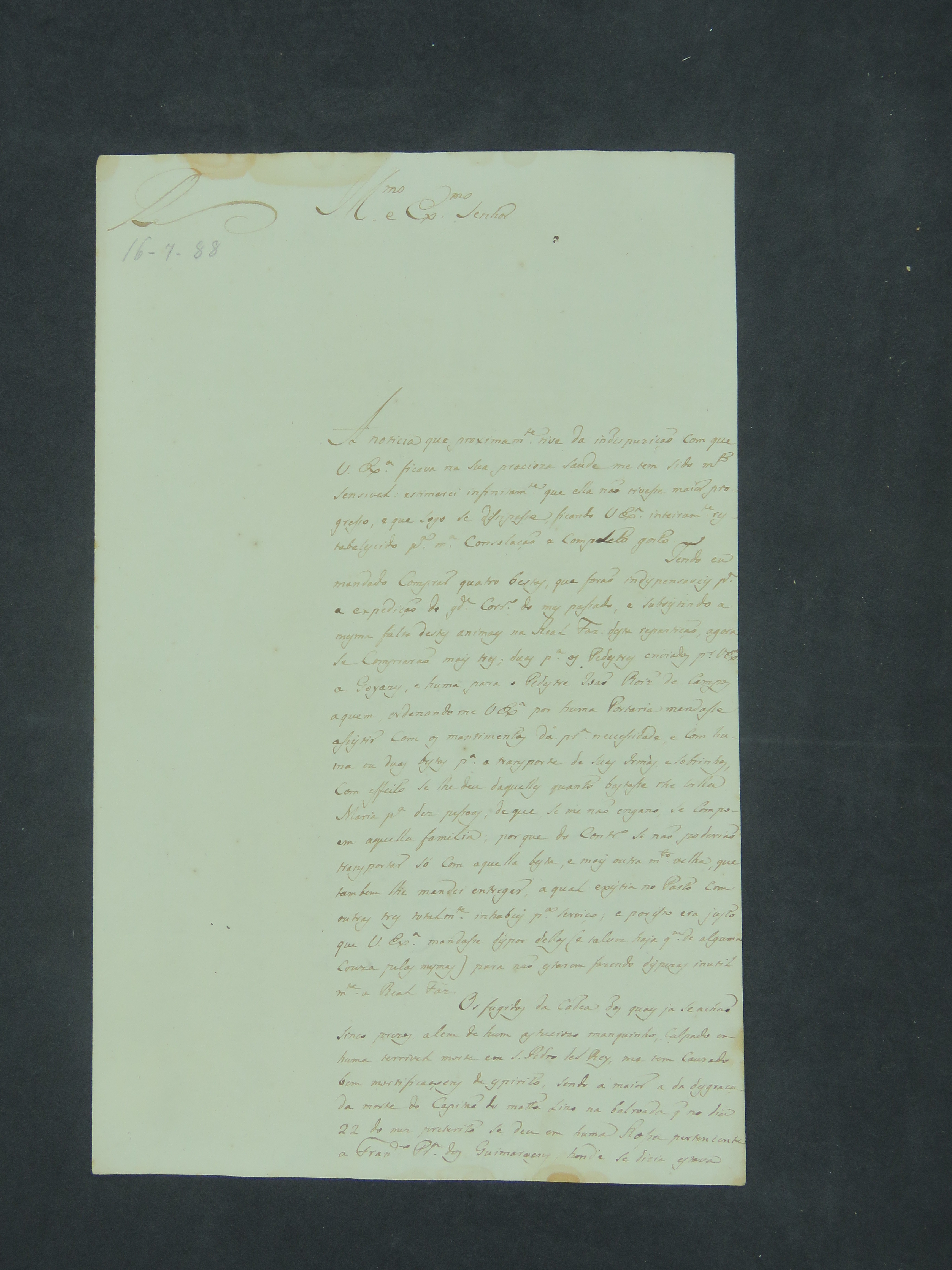 CARTA do Juiz de Fora, Diogo de Toledo Lara Ordonhes, ao Governador e Capitão-General da Capitania de Mato Grosso, Luís de Albuquerque de Melo Pereira e Cáceres.