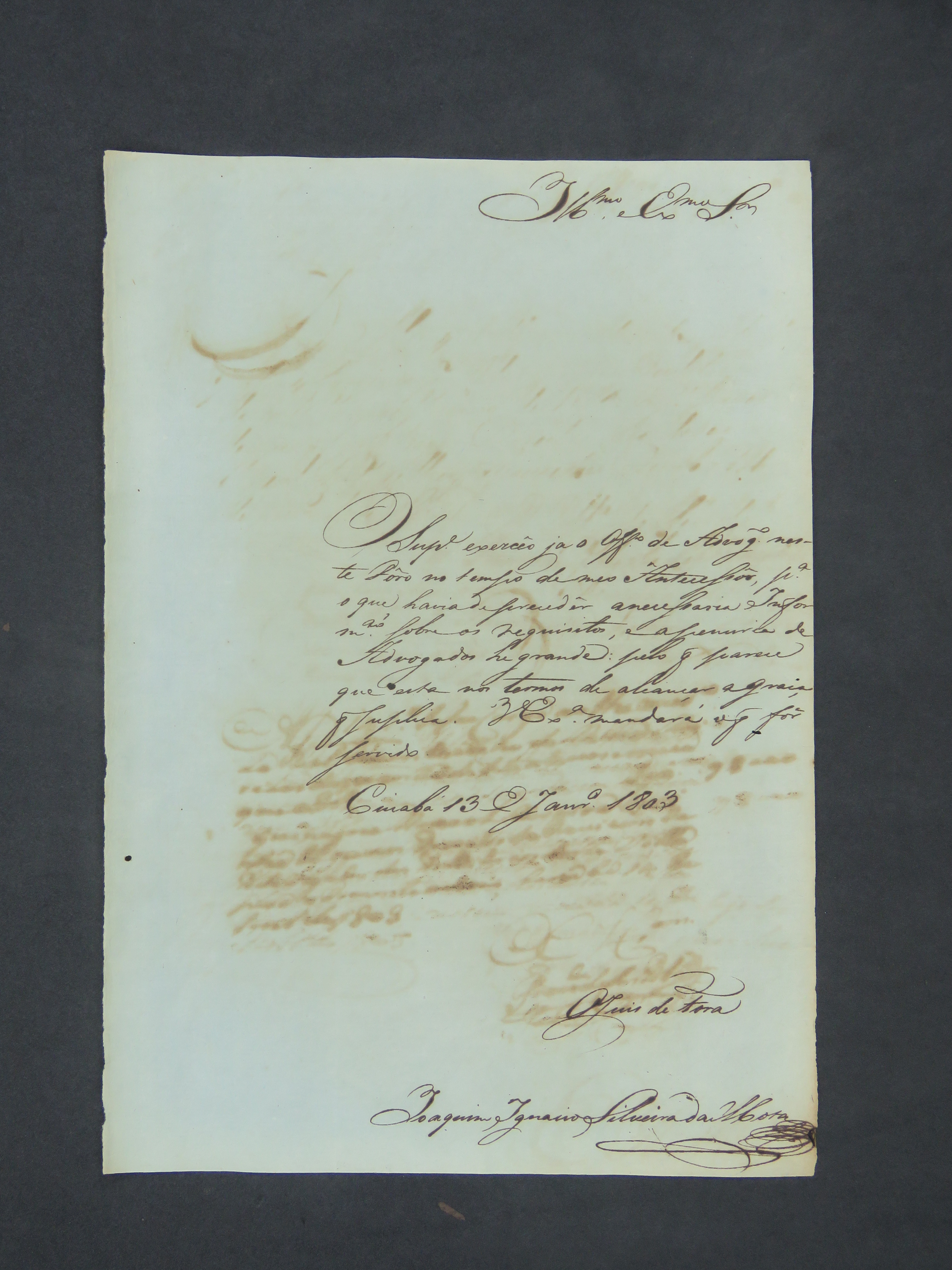 CARTA do Juiz de Fora da Vila do Cuiabá, Joaquim Inácio Silveira da Mota, ao [Governador e Capitão-General da Capitania de Mato Grosso, Caetano Pinto de Miranda e Montenegro].