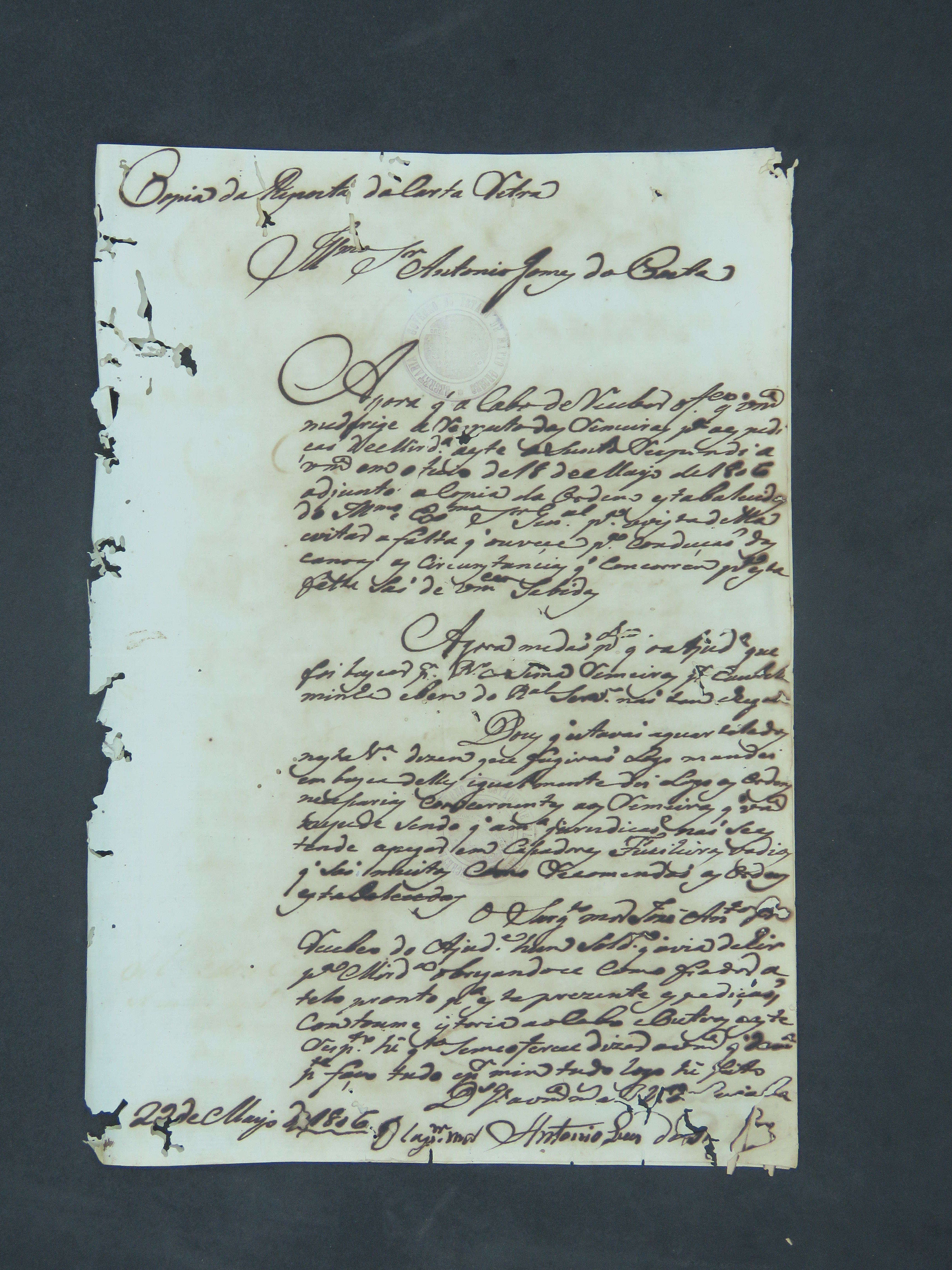 CARTA do Juiz de Fora por ordenação, Antônio Gomes da Costa, ao Capitão-mor Antônio Luís da Rocha.