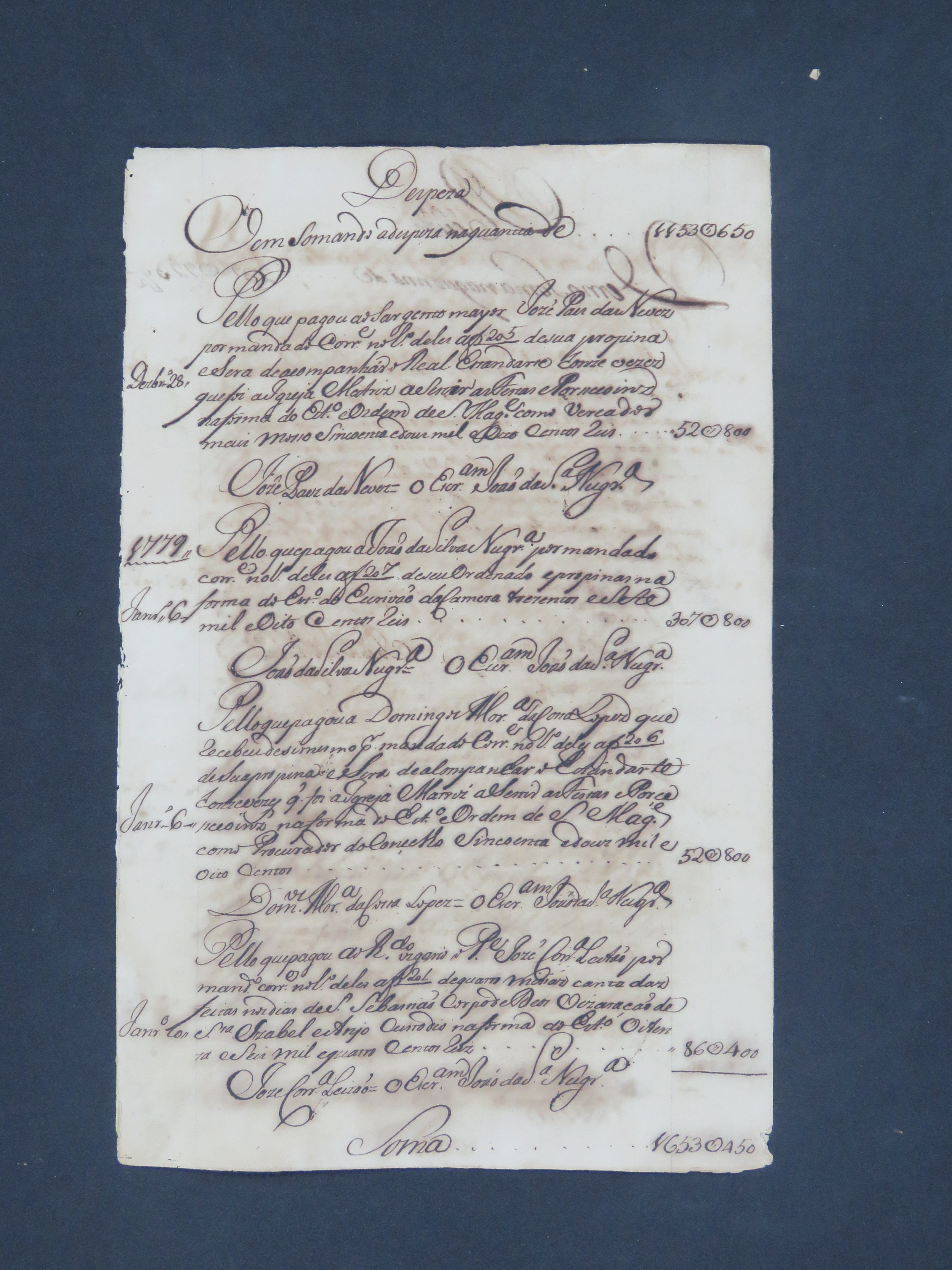 MAPA de conta dos bens do Conselho das Receitas e despesas da Vila do Cuiabá em 1778.