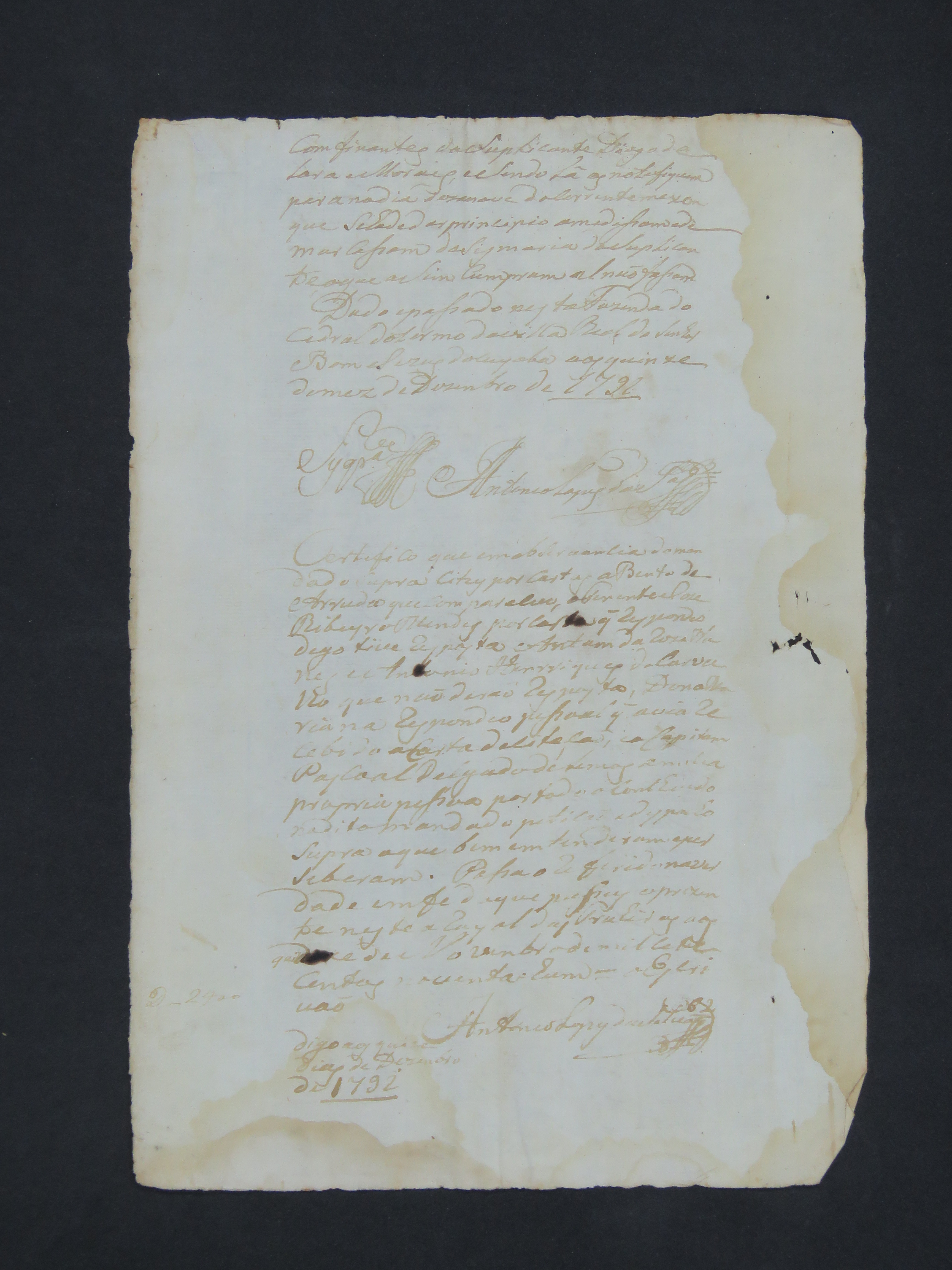 PROCESSO de demarcação de sesmaria requerido por Diogo de Lara e Morais ao Juiz de Sesmarias, Joaquim da Costa Siqueira, referente a uma sesmaria que recebeu de herança de seu pai, Francisco Ribeiro de Morais.