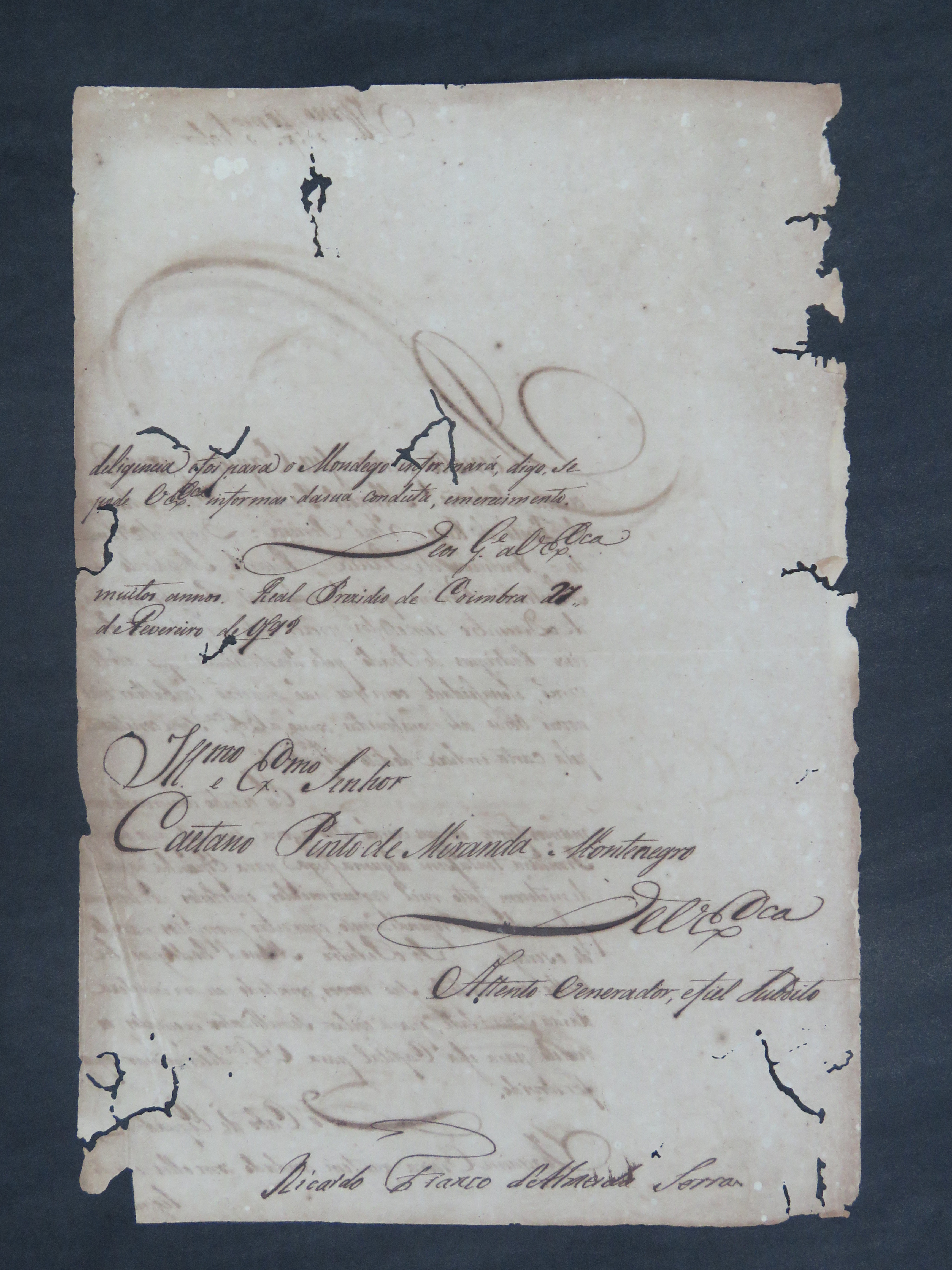 CARTA do Comandante do Forte de Coimbra Ricardo Franco de Almeida Serra ao Governador e Capitão General da Capitania de Mato Grosso Caetano Pinto de Miranda e Montenegro.