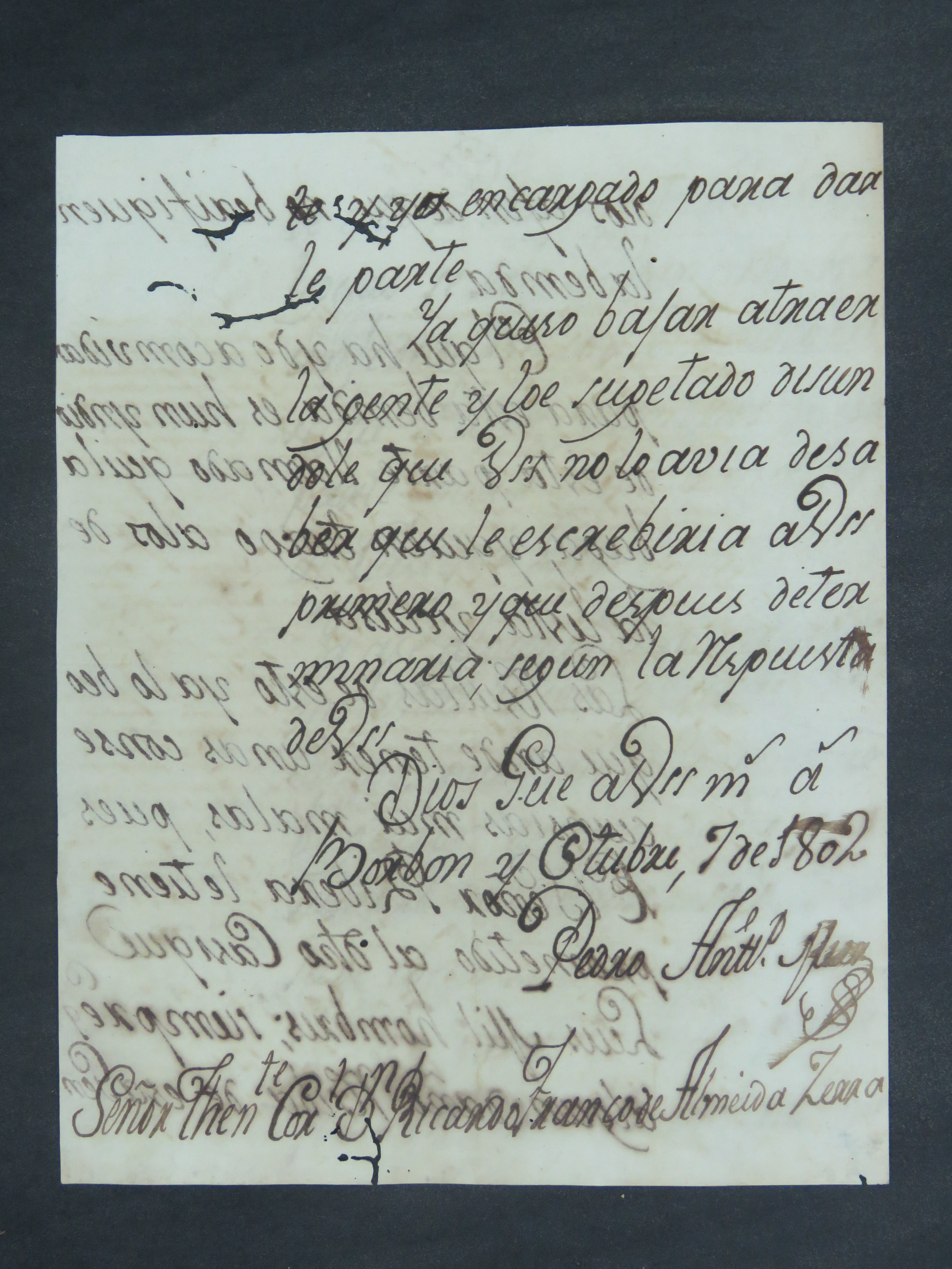 CARTA do Governador de Assunção Pedro Antônio [Miers] ao Tenente Coronel Comandante de Coimbra Ricardo Franco de Almeida Serra.