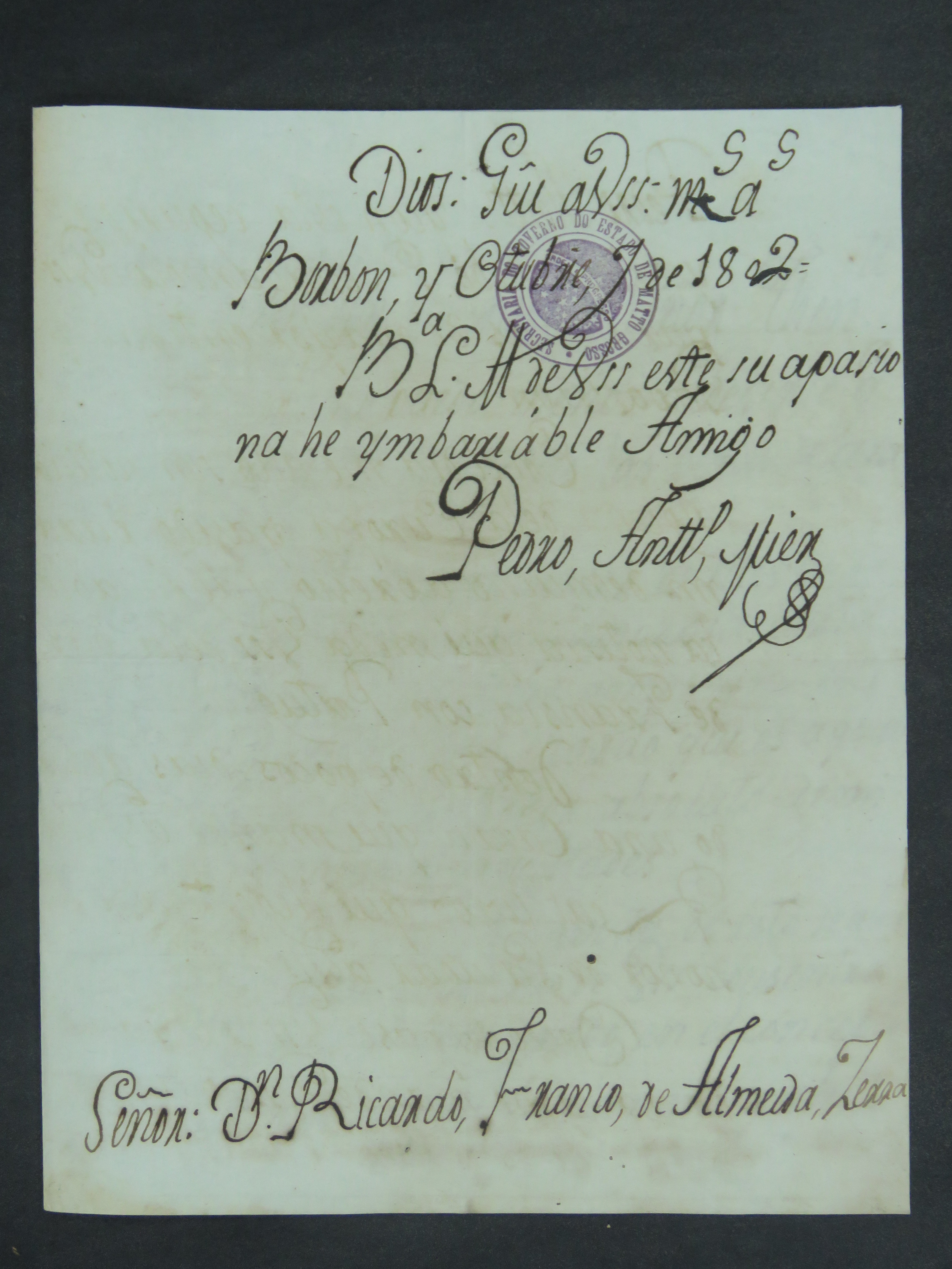 CARTA do Governador de Assunção Pedro Antônio [Miers] ao Tenente Coronel Comandante de Coimbra Ricardo Franco de Almeida Serra.