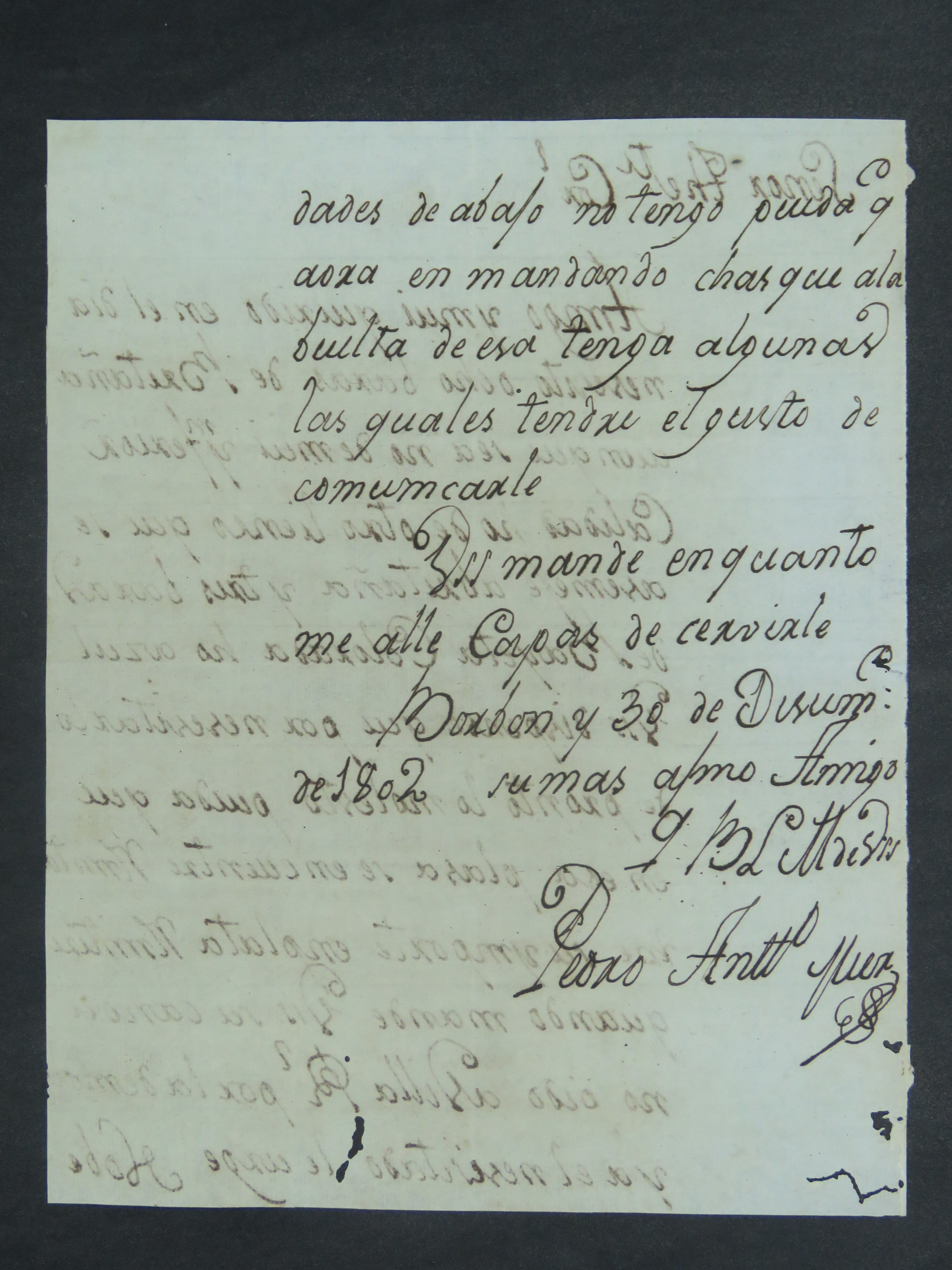 CARTA do Comandante de Bourbon Pedro Antônio [Miers] ao Tenente Coronel Comandante de Coimbra Ricardo Franco de Almeida Serra.