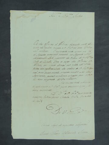 CARTA do Comandante Ricardo Franco de Almeida Serra ao [Governador e Capitão General da Capitania de Mato Grosso João Carlos Augusto de Oeynhausen Gravemberg].