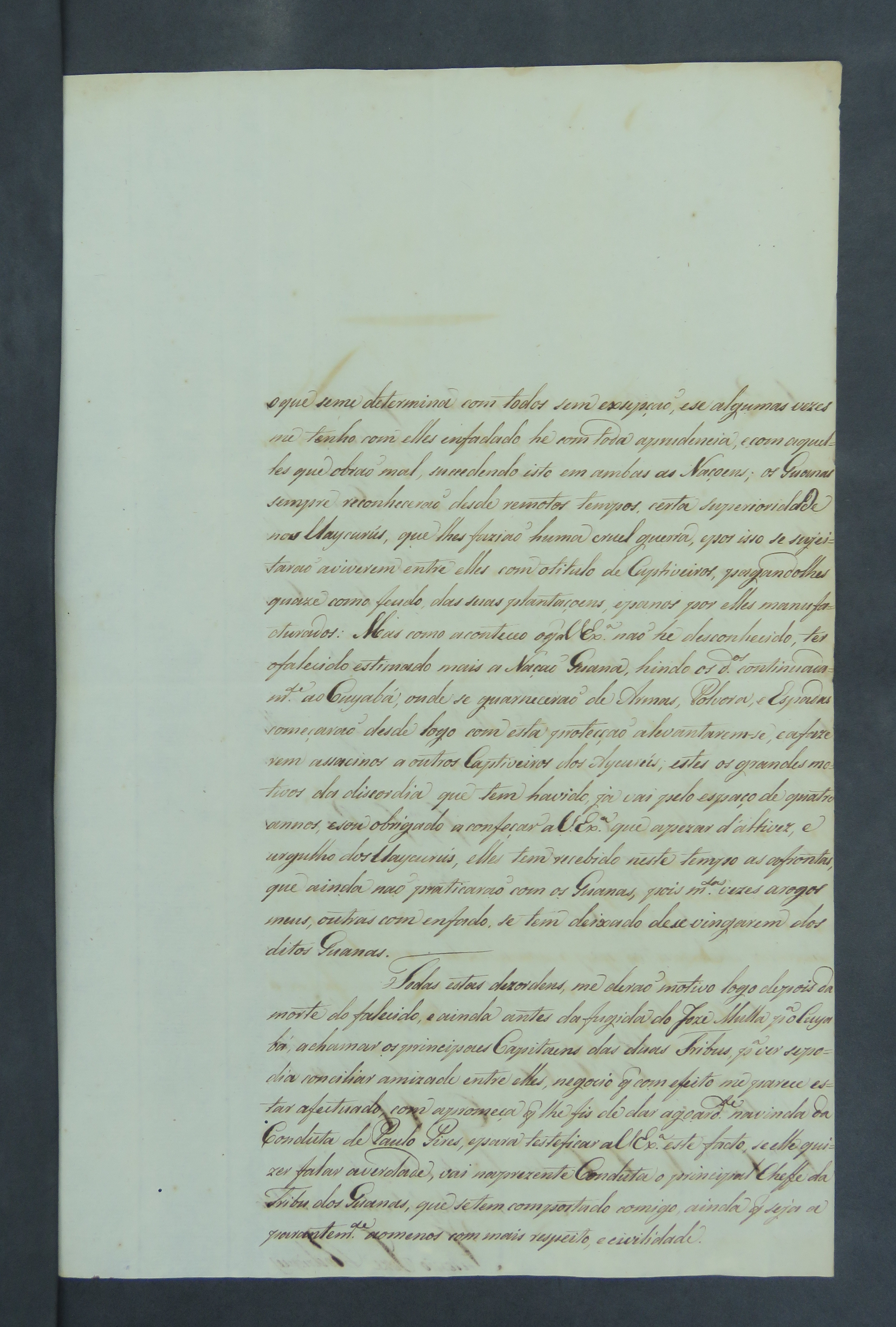 CARTA do Major Comandante Antônio José Rodrigues ao Governador e Capitão-General da Capitania de Mato Grosso João Carlos Augusto D' Oeynhausen e Gravemberg.