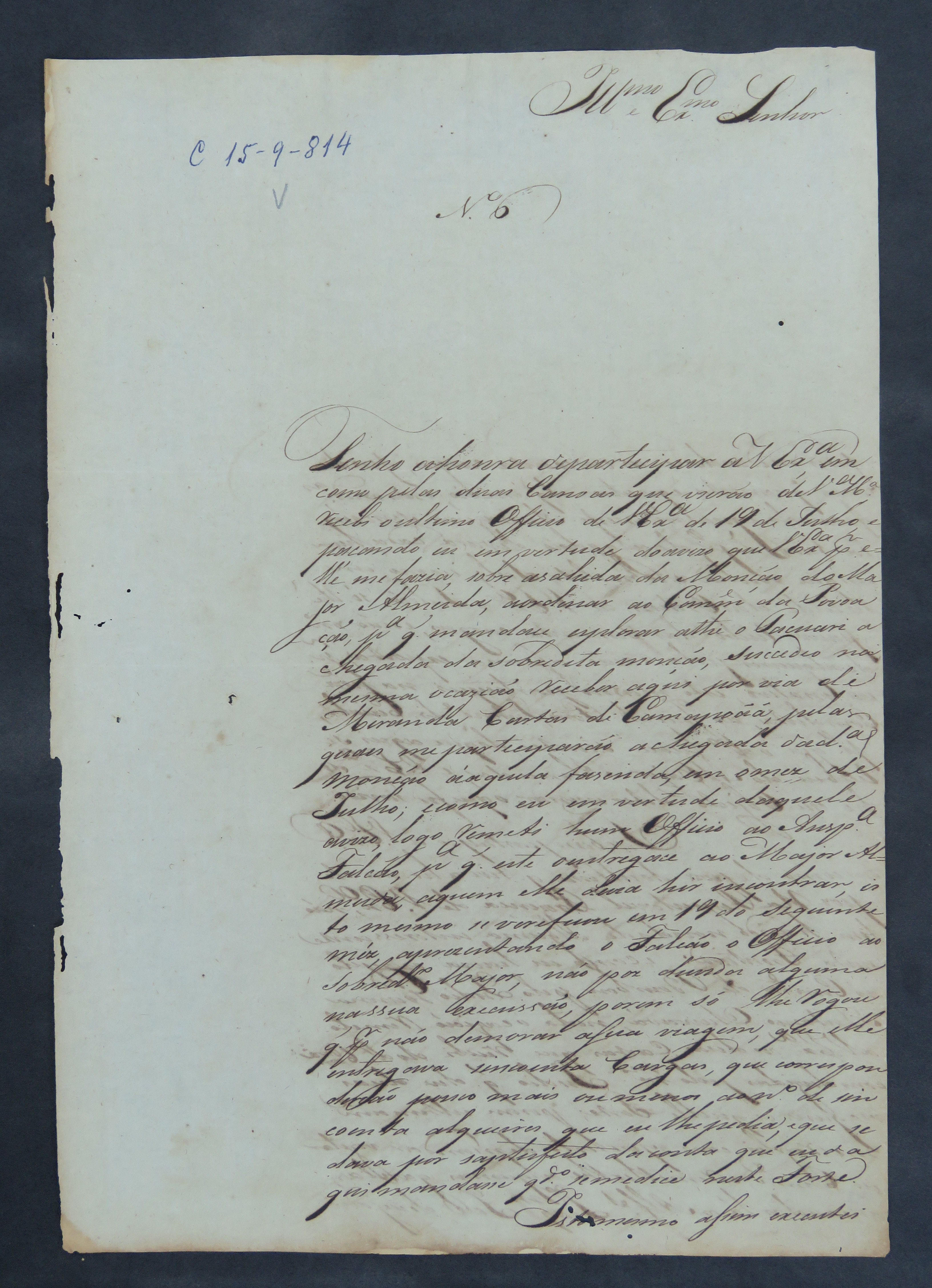 CARTA do Tenente Coronel e Comandante de Coimbra Antônio José Rodrigues ao Governador e Capitão General da Capitania de Mato Grosso João Carlos Augusto de Oeynhausen e Gravemberg.