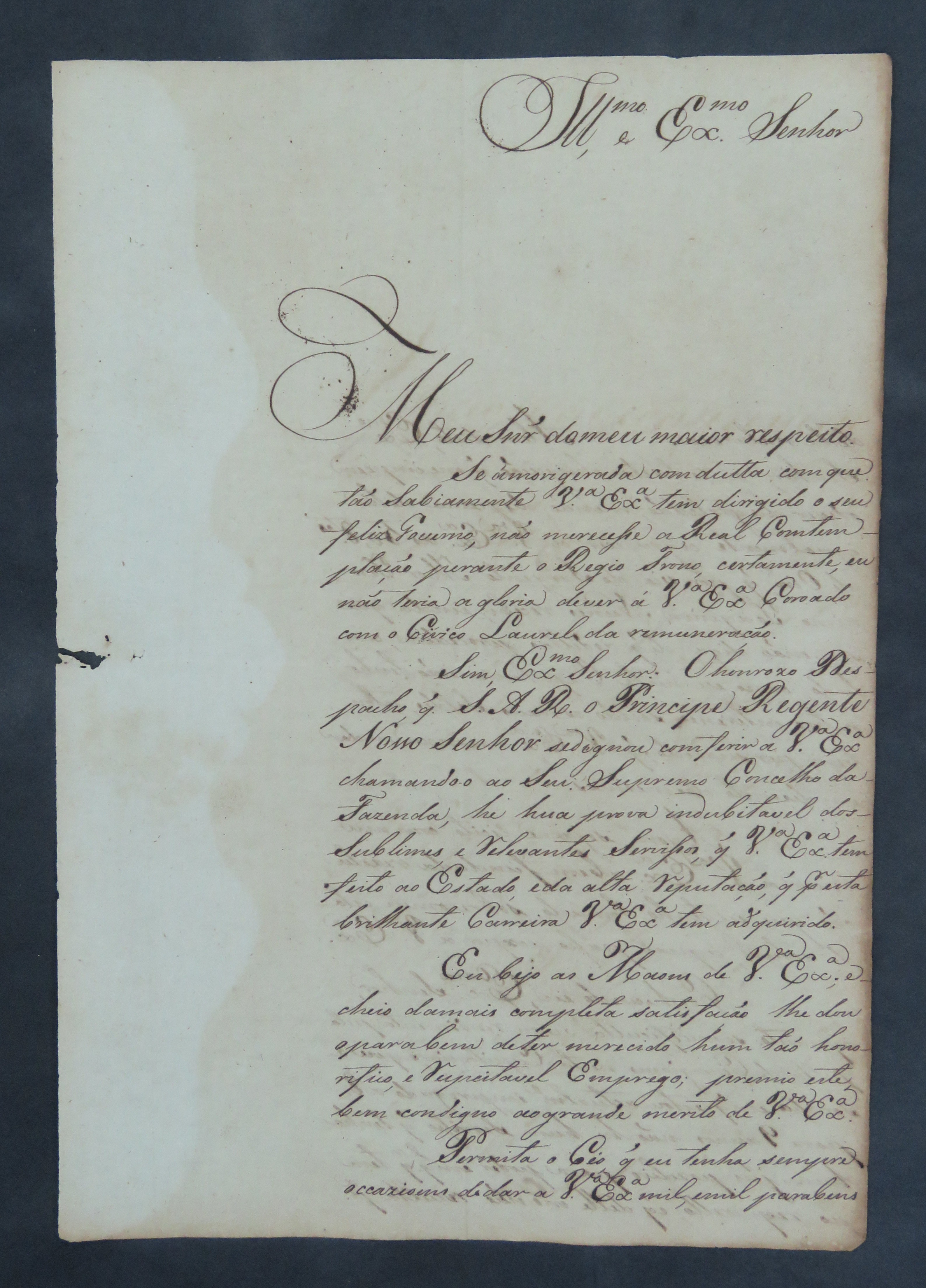 CARTA do [cirurgião] Manoel Fernando Pimentel ao Governador da Capitania de Mato Grosso João Carlos Augusto D'Oeynhausen e Gravemberg.