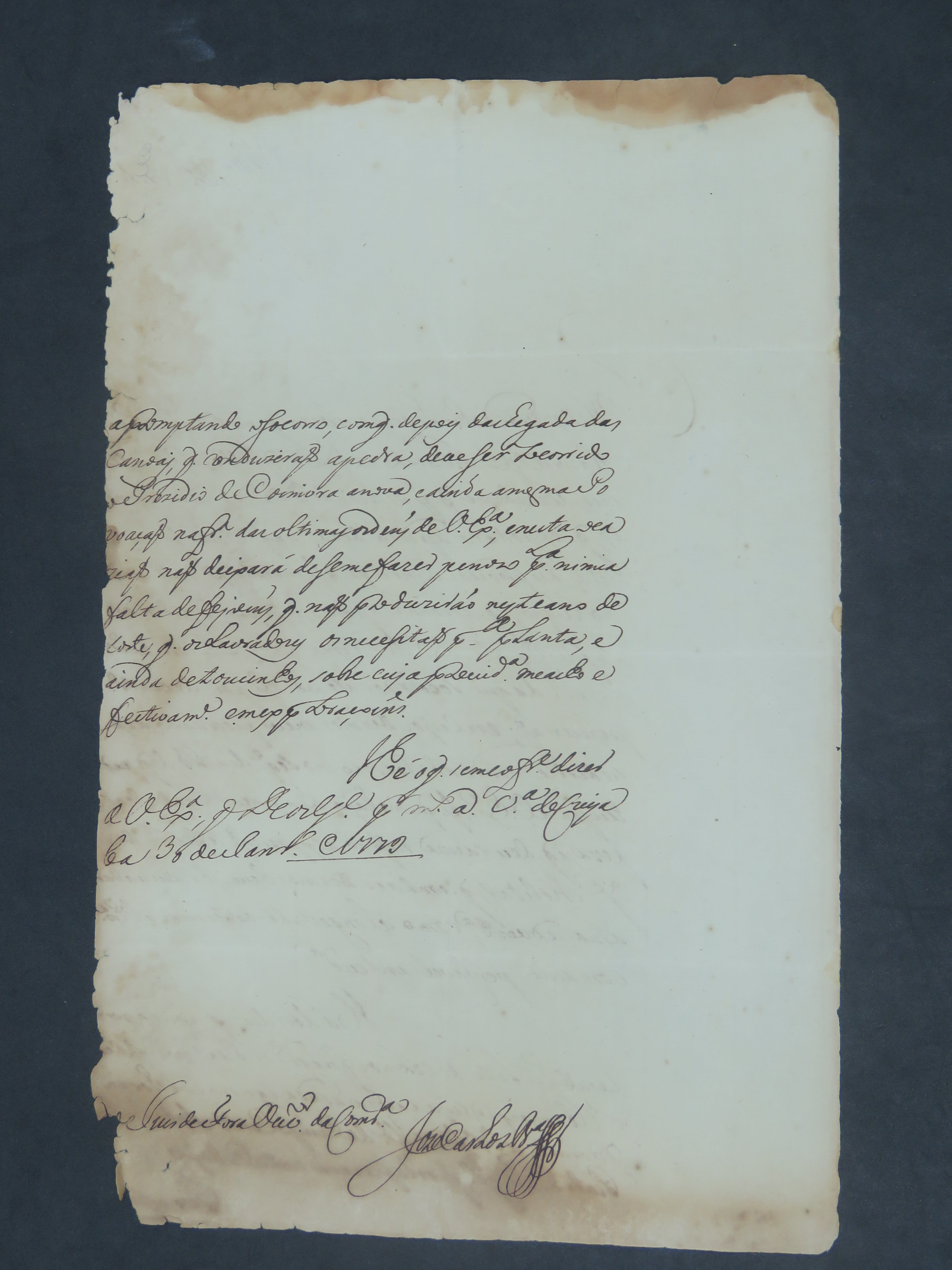 CARTA do [Juiz de Fora e Ouvidor da Comarca] José Carlos Pereira ao Governador e Capitão-General da Capitania de Mato Grosso Luiz de Albuquerque de Melo Pereira e Cáceres.