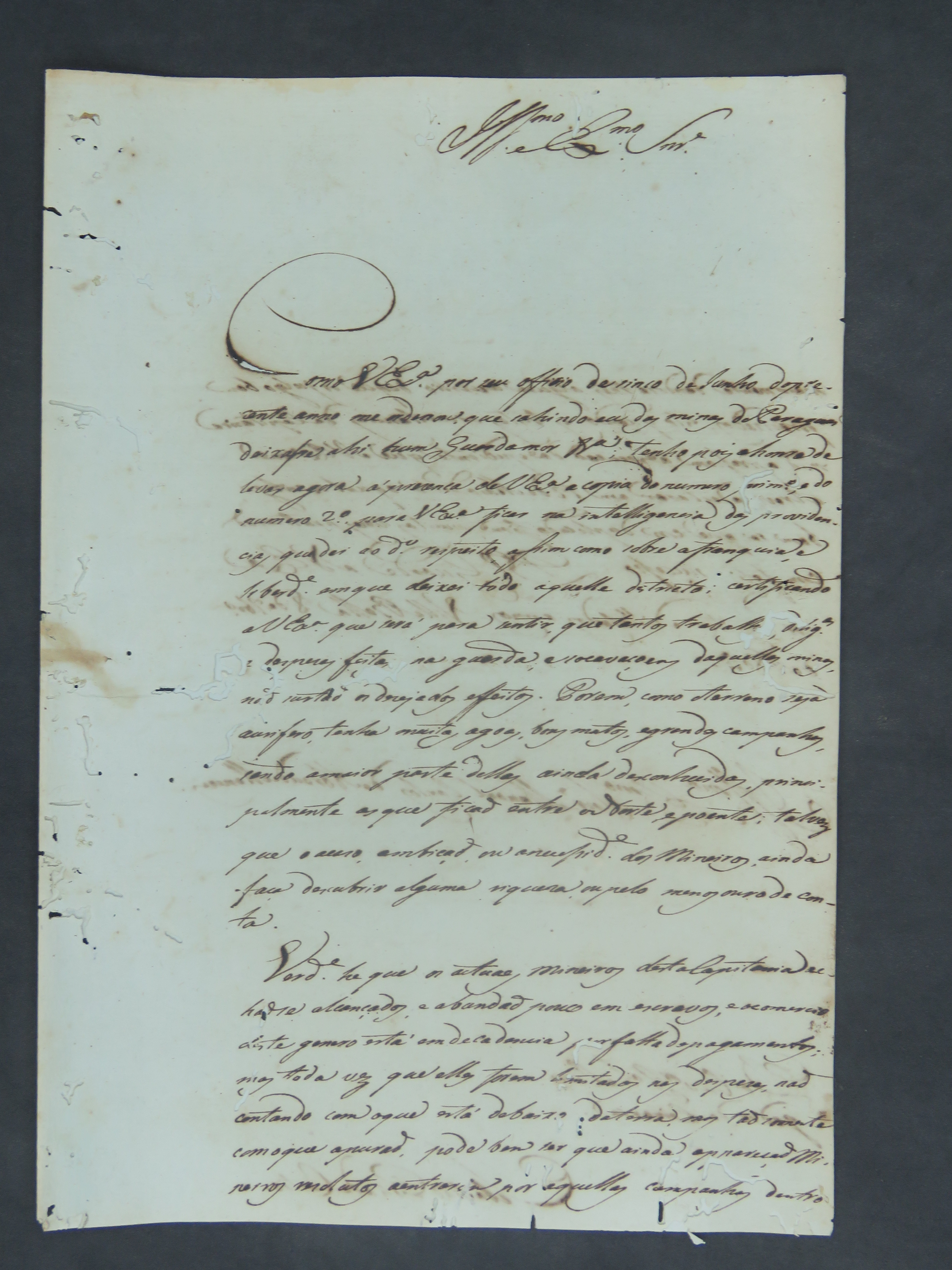 CARTA do Ouvidor Geral Sebastião Pita de Castro ao Governador e Capitão General da Capitania de Mato Grosso Manoel Carlos de Abreu Menezes.