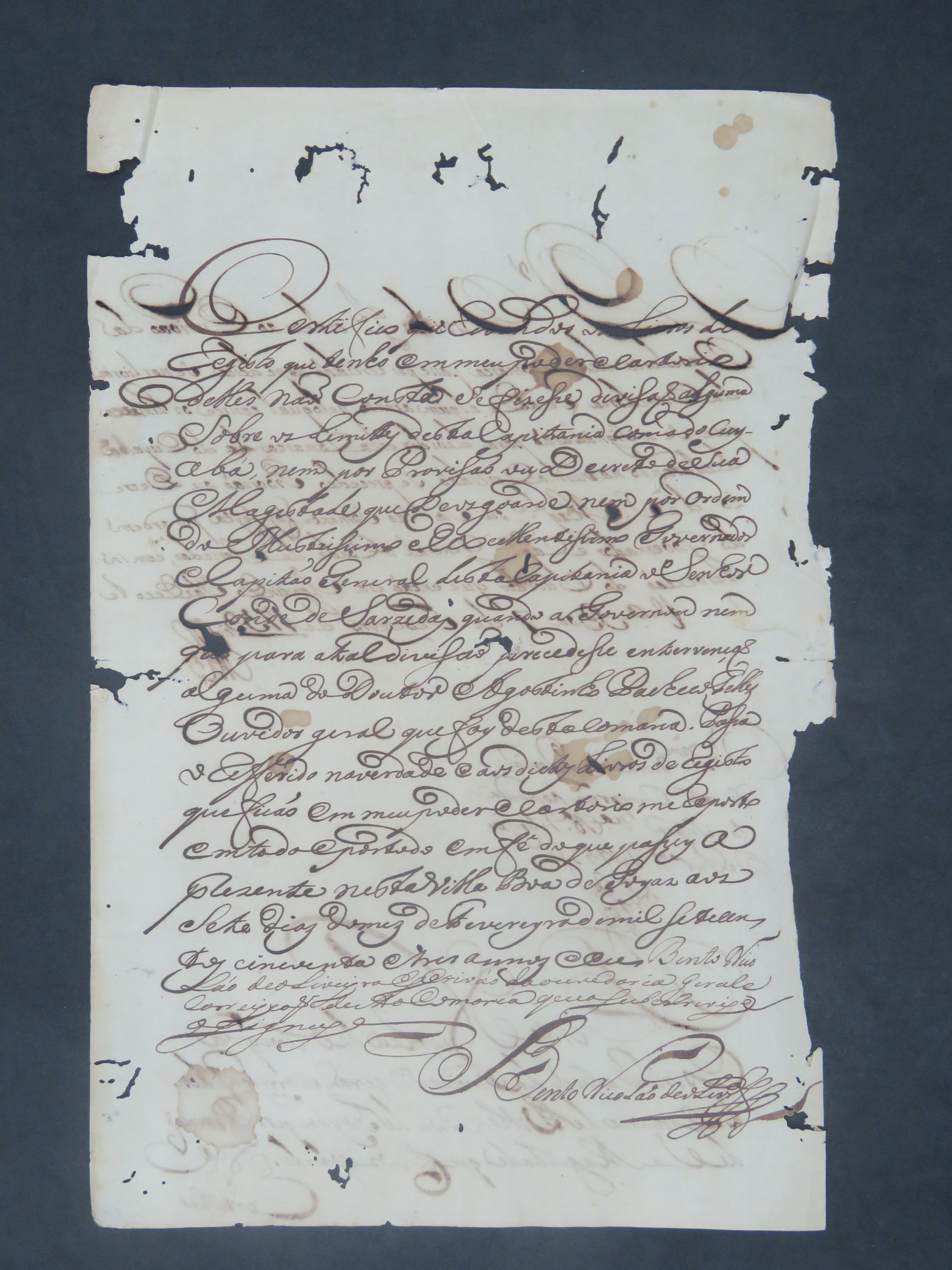 NOTIFICAÇÃO feita pelo Ouvidor Geral para o Escrivão da Ouvidoria Geral Bento Nicolau de Oliveira.