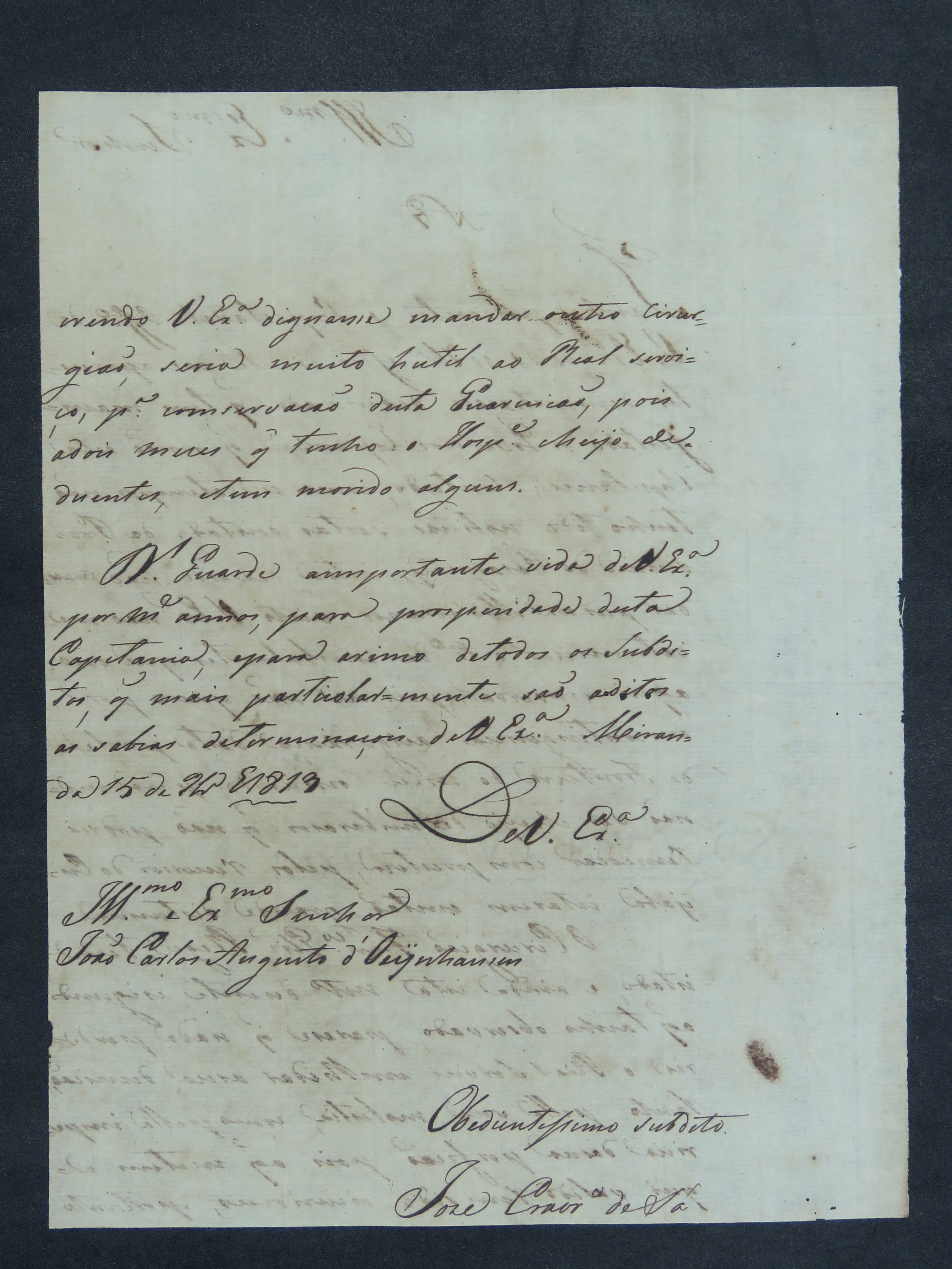 CARTA do [Comandante] do Presídio de Miranda José Craveiro de Sá ao Governador e Capitão-General da Capitania de Mato Grosso João Carlos Augusto D’ Oeynhausen e Gravemberg.