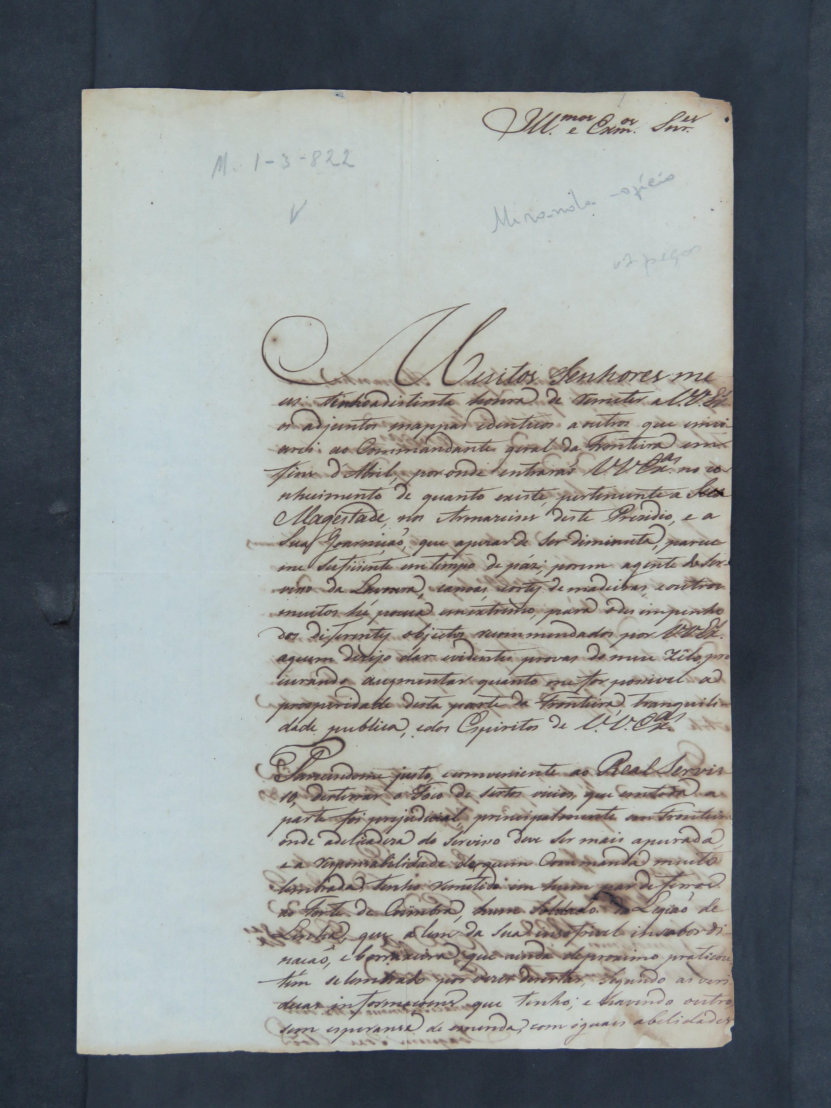 CARTA do [Comandante do Presídio de Miranda] Joaquim José Rodrigues à Primeira Junta Governativa Provisória.
