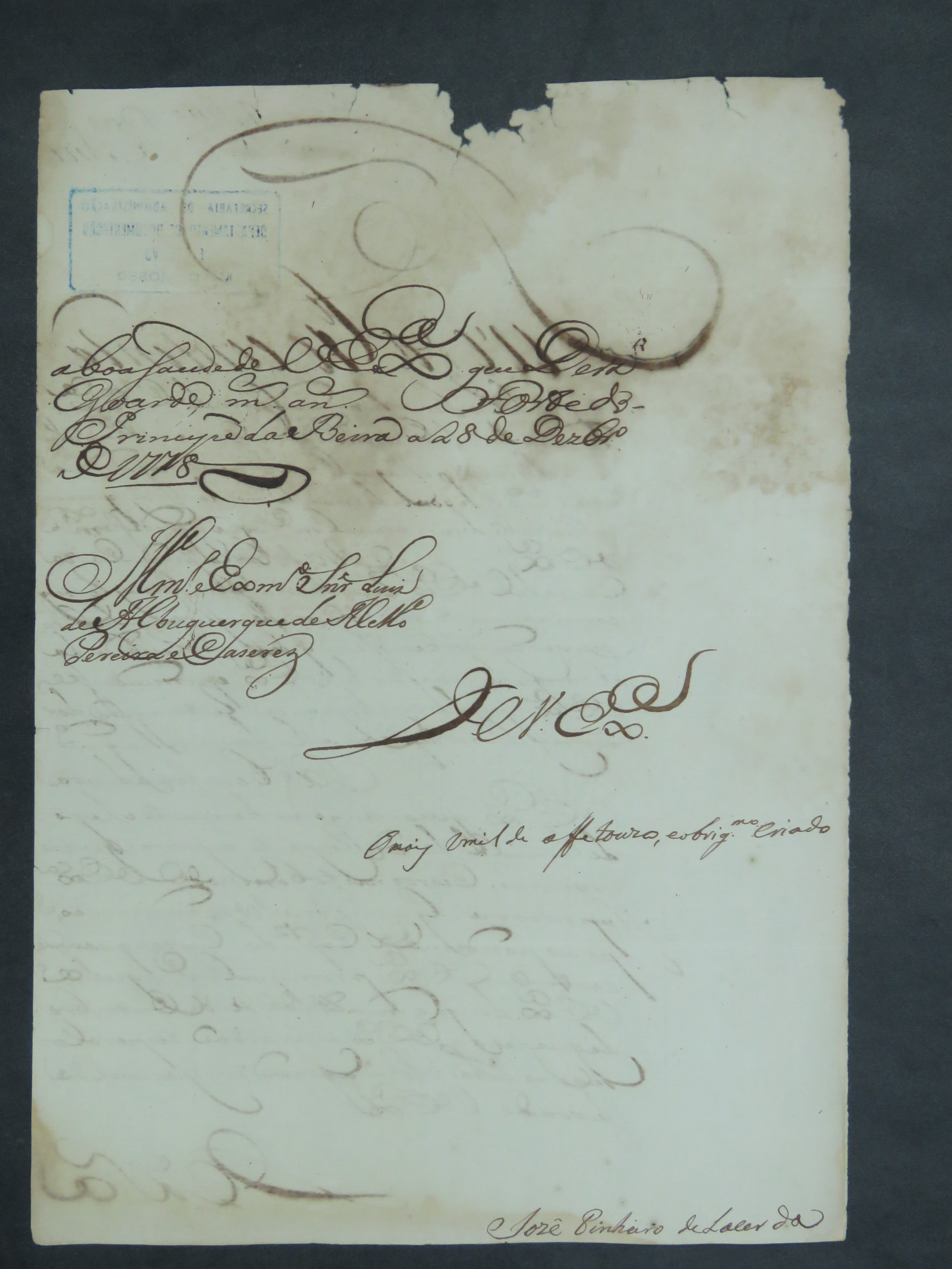 CARTA do Capitão Engenheiro José Pinheiro de Lacerda ao Governador e Capitão General da Capitania de Mato Grosso Luís de Albuquerque de Melo Pereira e Cáceres.