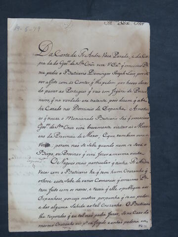 CARTA do [Tenente de Dragões] Joseph Manoel Cardoso da Cunha ao Governador e Capitão-General da Capitania de Mato Grosso Luís de Albuquerque de Mello Pereira e Cáceres.