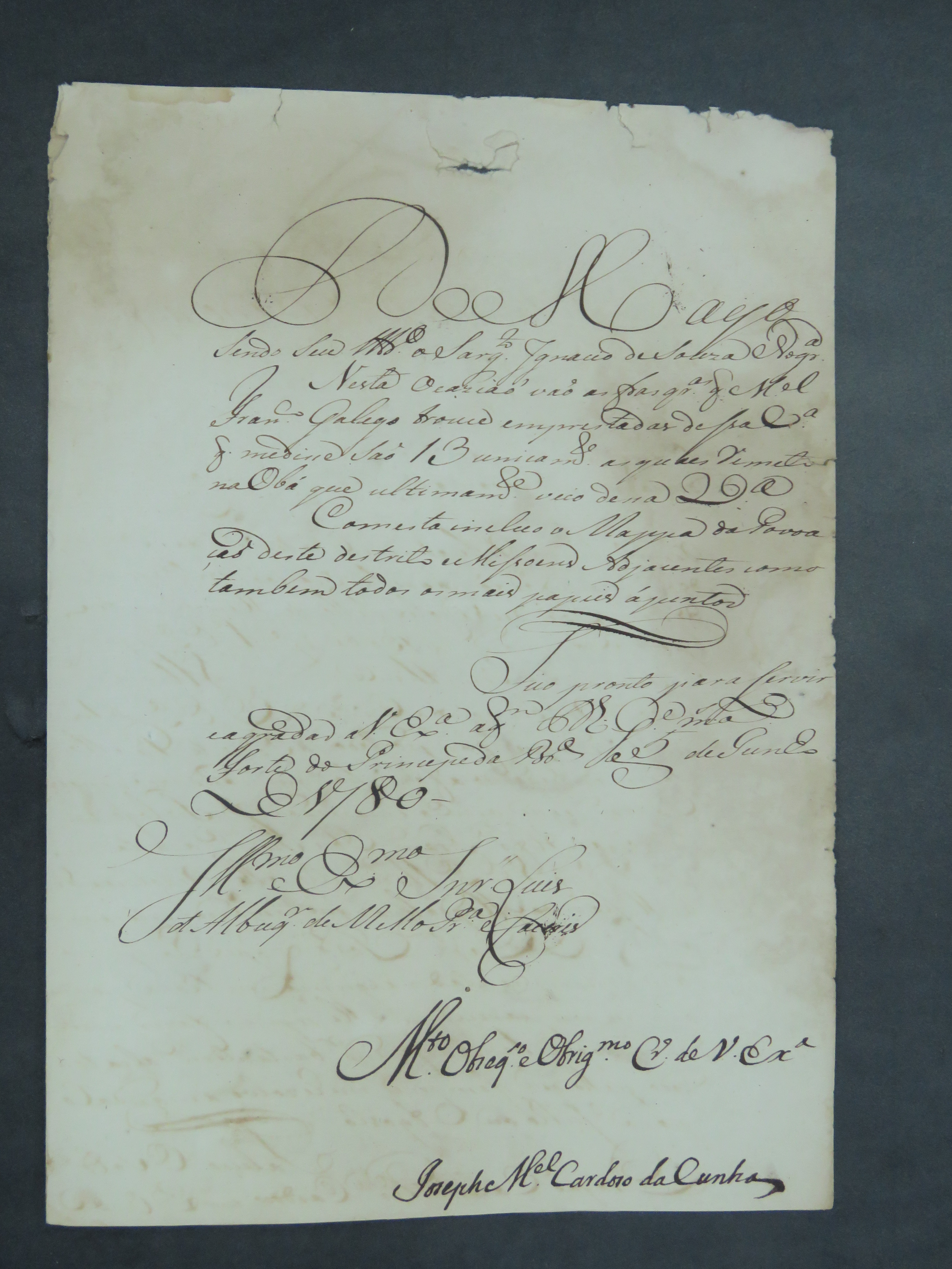 CARTA do [Tenente de Dragões] Joseph Manoel Cardoso da Cunha ao Governador e Capitão-General da Capitania de Mato Grosso Luís de Albuquerque de Mello Pereira e Cáceres.