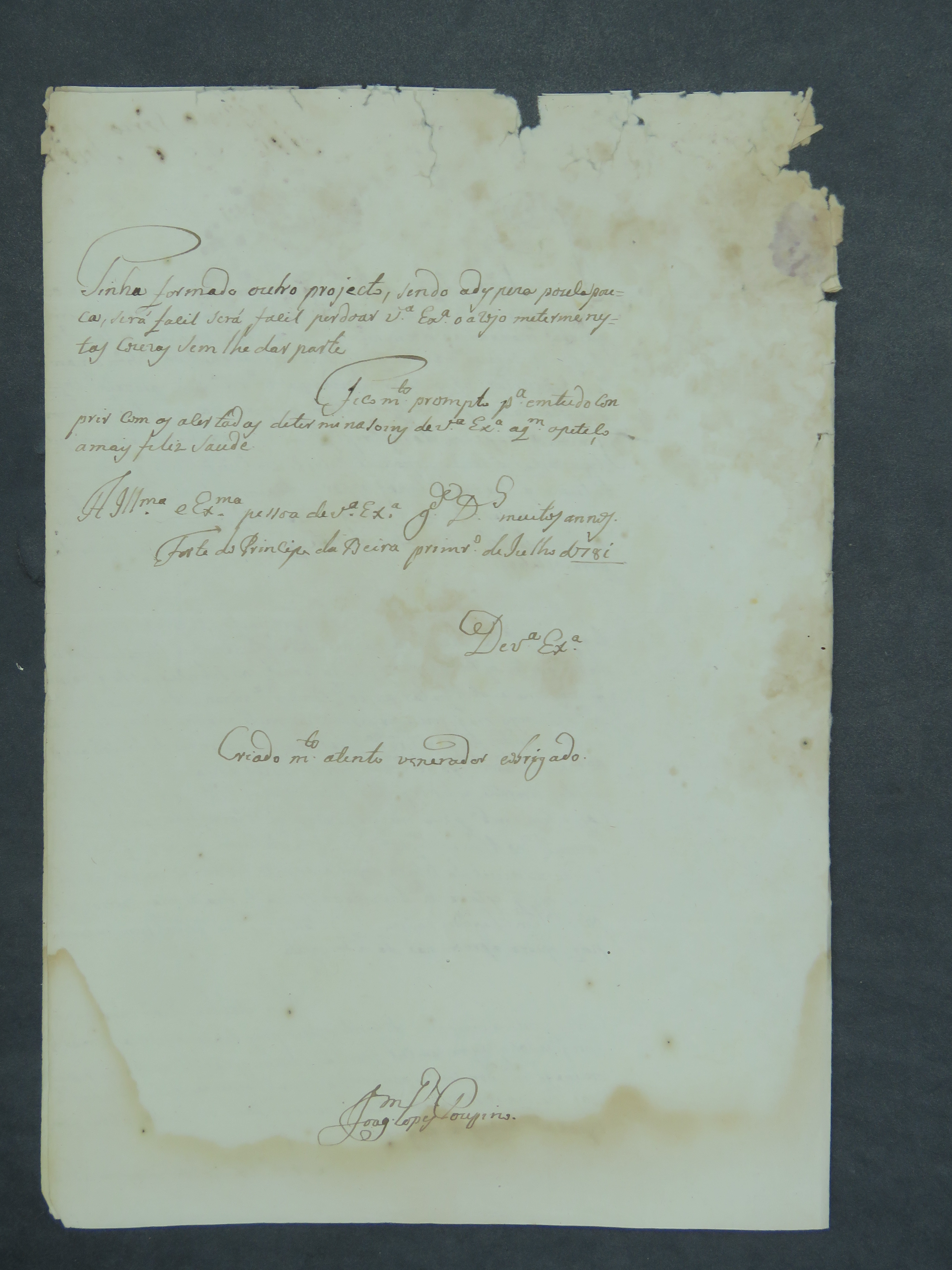 CARTA do [Capitão] Joaquim Lopes Poupino ao Governador e Capitão-General da Capitania de Mato Grosso Luís de Albuquerque de Melo Pereira e Cáceres.