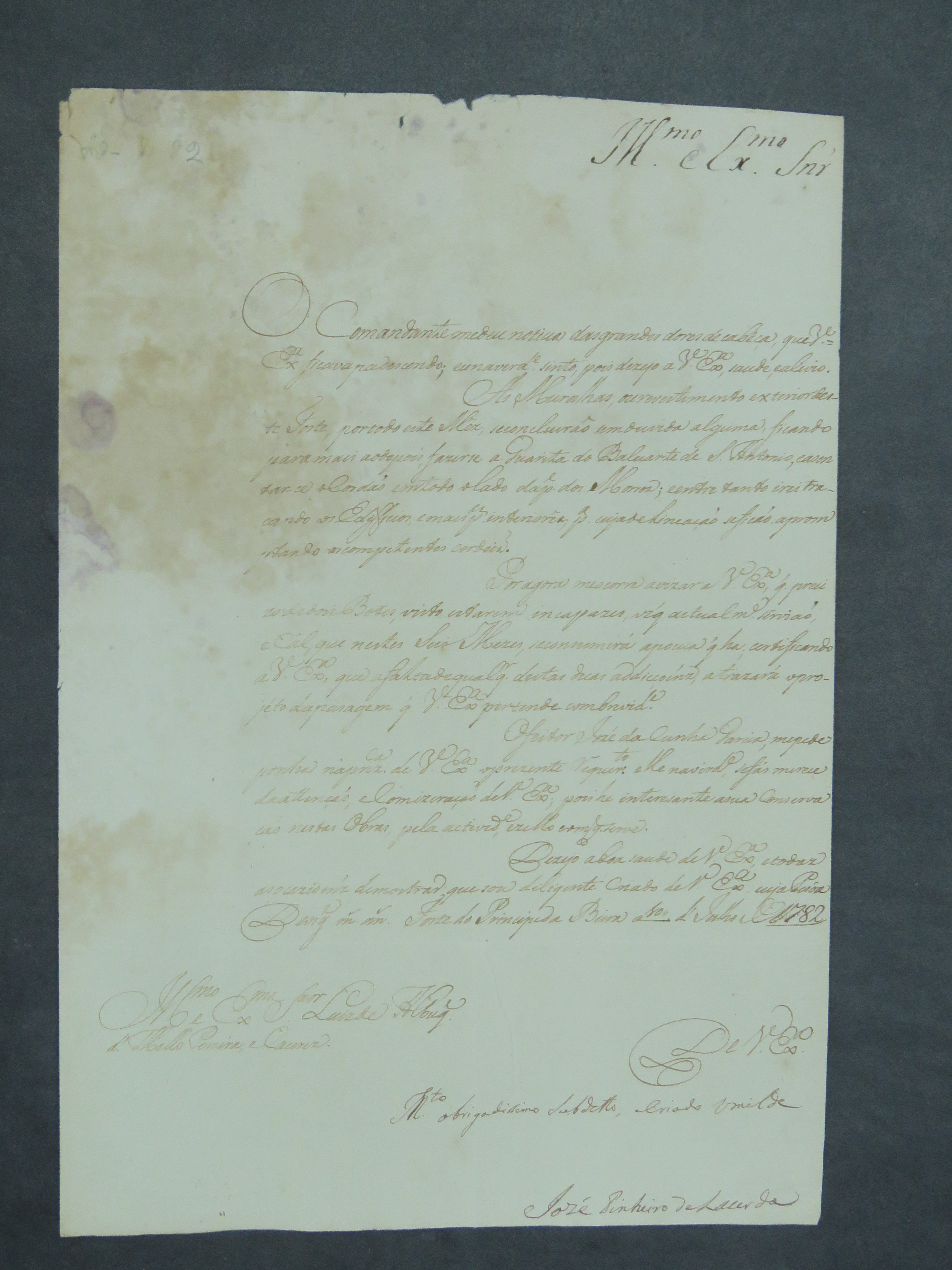 CARTA do [Capitão Engenheiro] José Pinheiro de Lacerda ao Governador e Capitão-General da Capitania de Mato Grosso Luís de Albuquerque de Melo Pereira e Cáceres.
