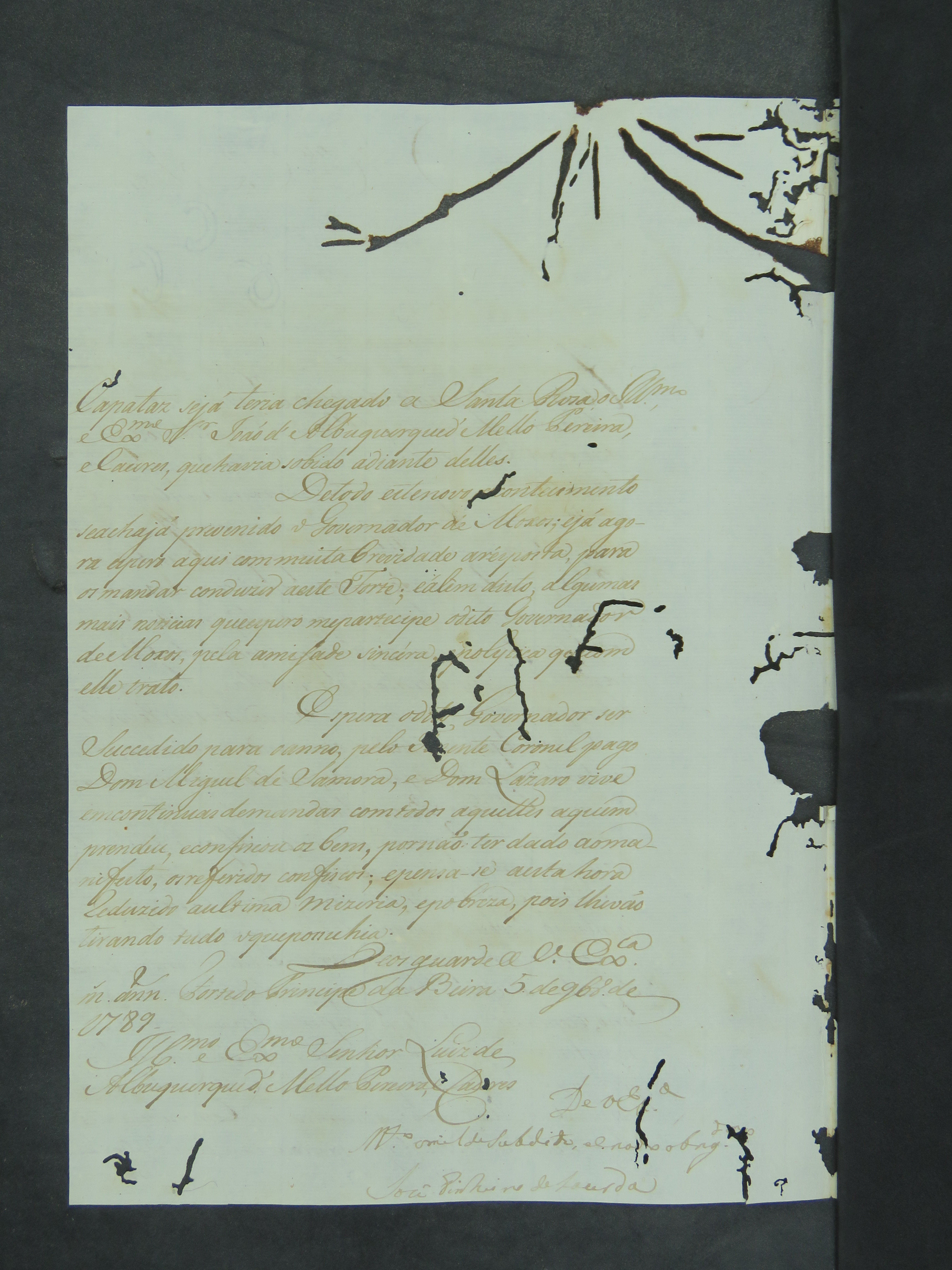 CARTA do [Capitão Engenheiro] José Pinheiro de Lacerda ao Governador e Capitão-General da Capitania de Mato Grosso Luís de Albuquerque de Mello Pereira e Cáceres.