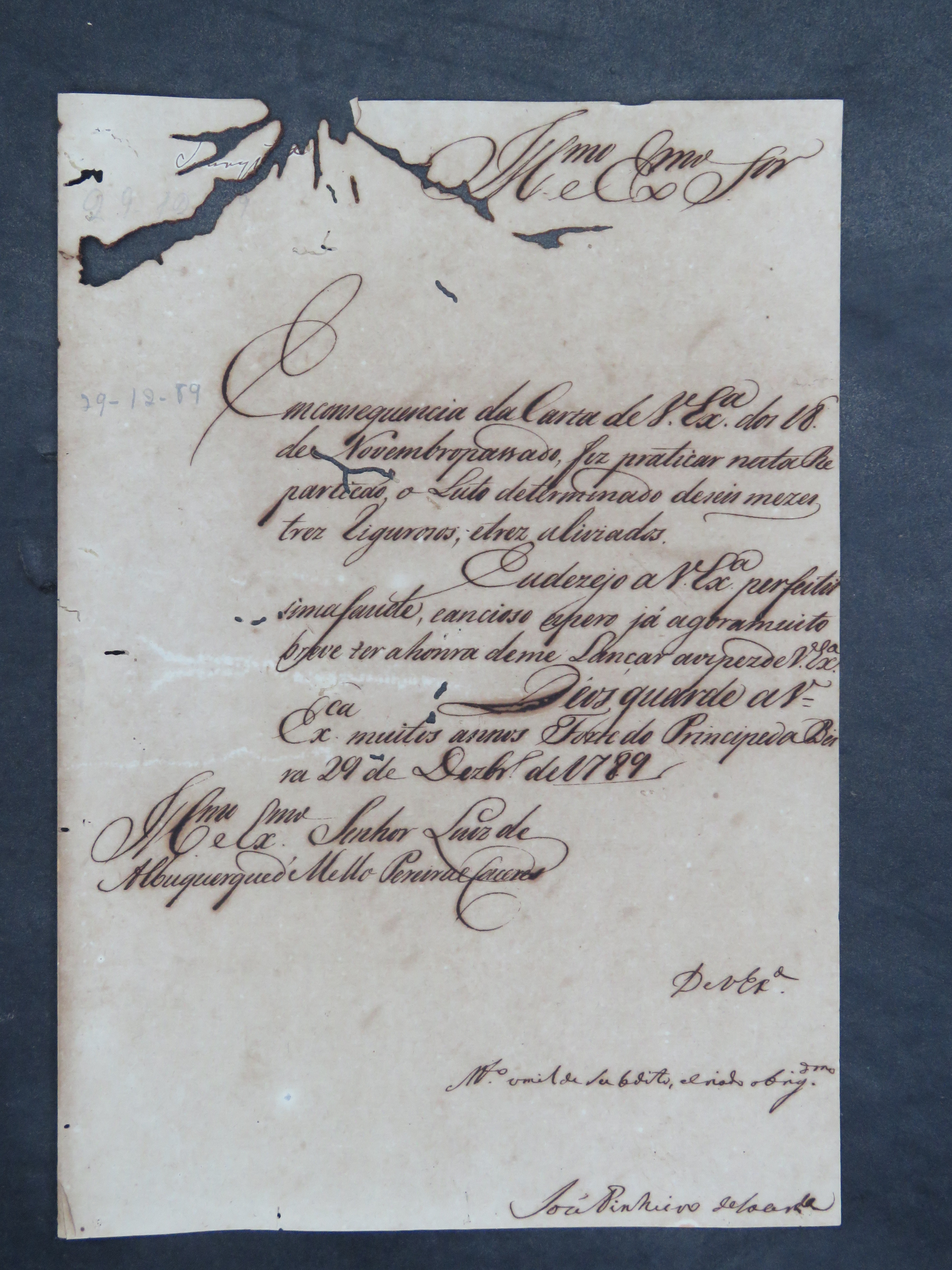 CARTA do [Capitão Engenheiro] José Pinheiro de Lacerda ao Governador e Capitão-General da Capitania de Mato Grosso Luís de Albuquerque de Mello Pereira e Cáceres.