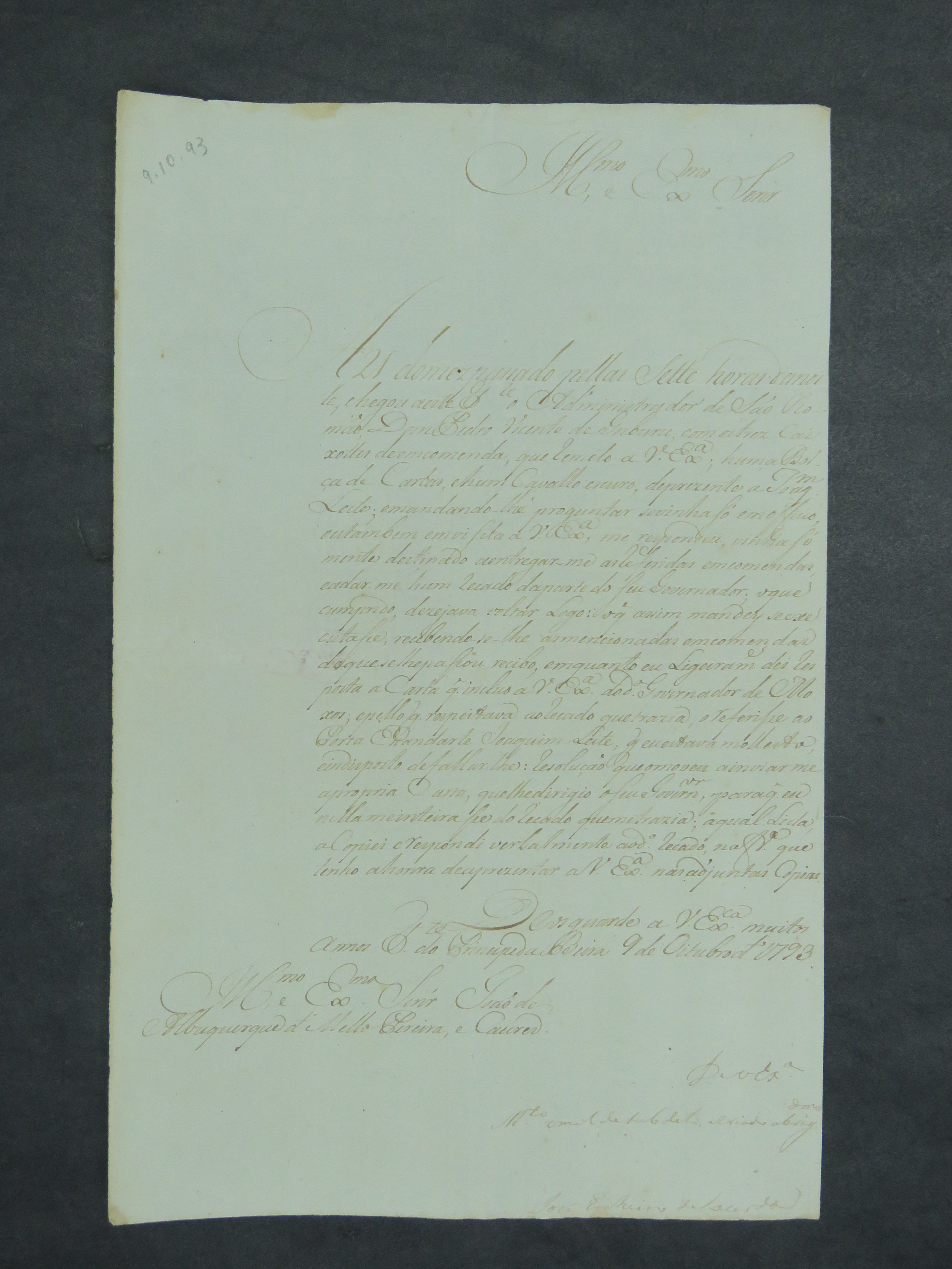 CARTA do [Capitão Engenheiro] José Pinheiro de Lacerda ao Governador e Capitão-General da Capitania de Mato Grosso João de Albuquerque de Melo Pereira e Cáceres.