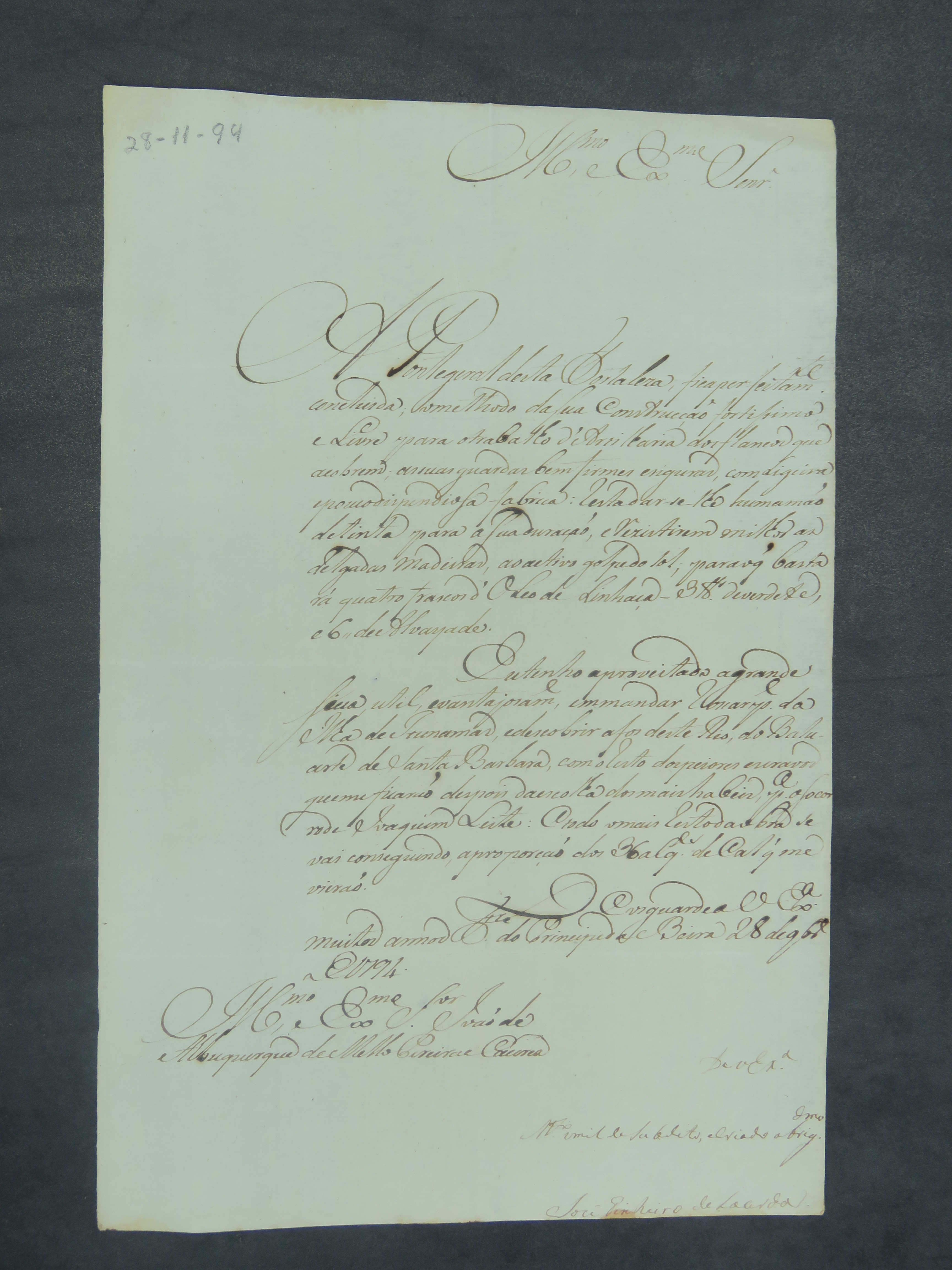 CARTA do [Capitão Engenheiro] José Pinheiro de Lacerda ao Governador e Capitão-General da Capitania de Mato Grosso João de Albuquerque de Melo Pereira e Cáceres.
