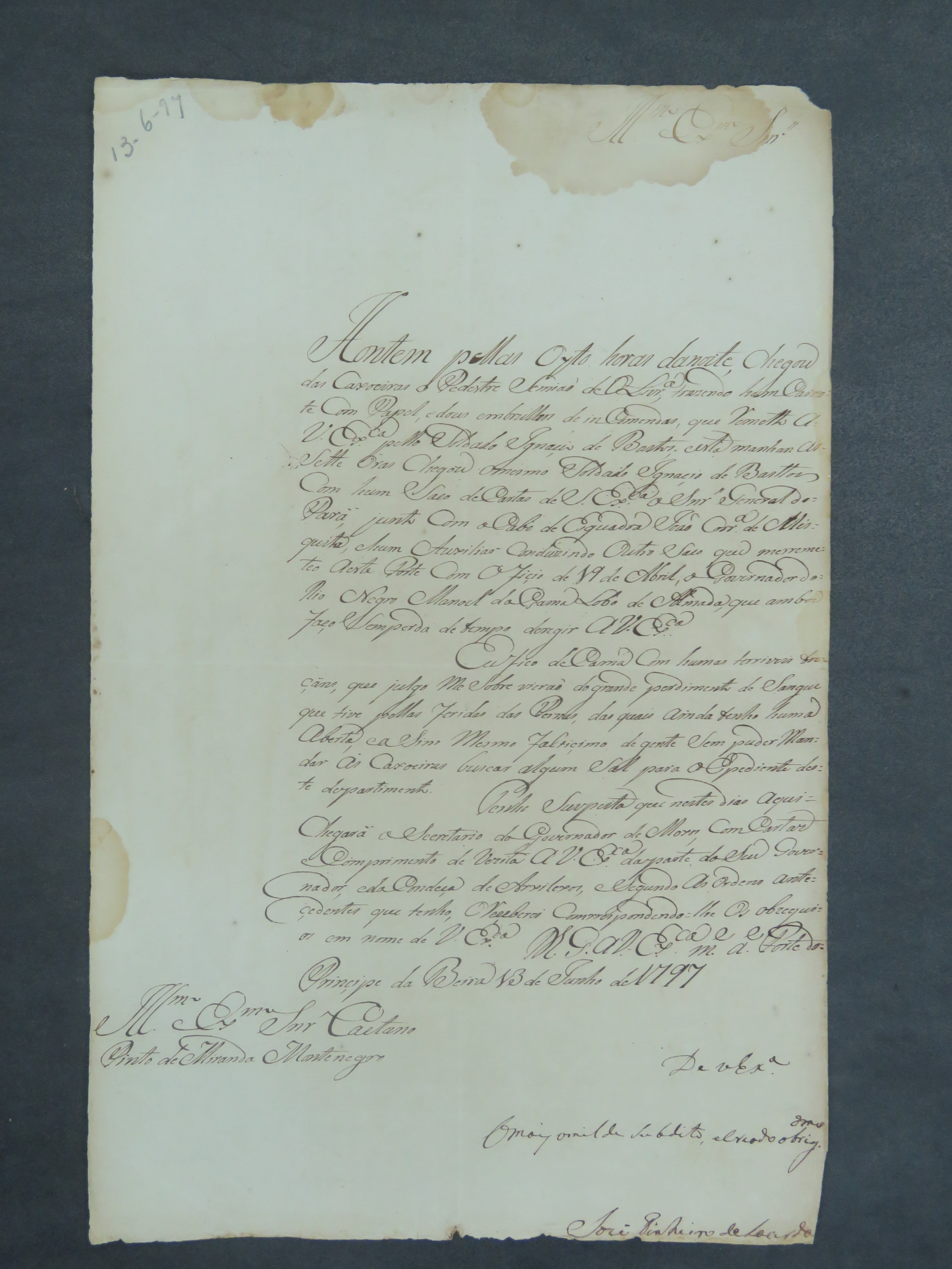 CARTA do [Capitão Engenheiro e Comandante] José Pinheiro de Lacerda ao Governador e Capitão-General da Capitania de Mato Grosso Caetano Pinto de Miranda e Montenegro.