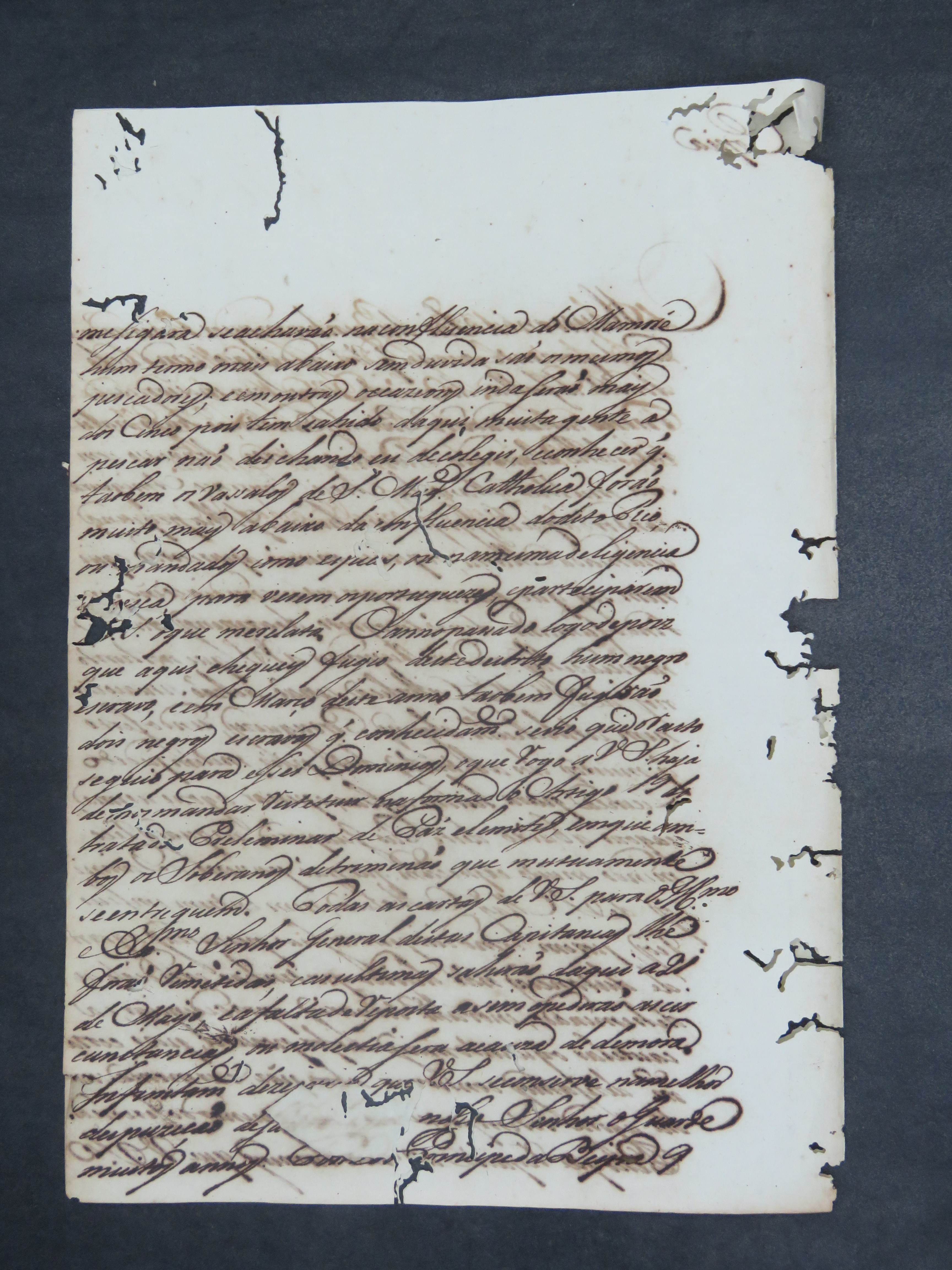 CARTA (Cópia) do [Comandante do Forte Príncipe da Beira] Joseph Manoel Cardoso da Cunha ao [Governador e Capitão-General da Capitania de Mato Grosso] Caetano Pinto de Miranda e Montenegro.