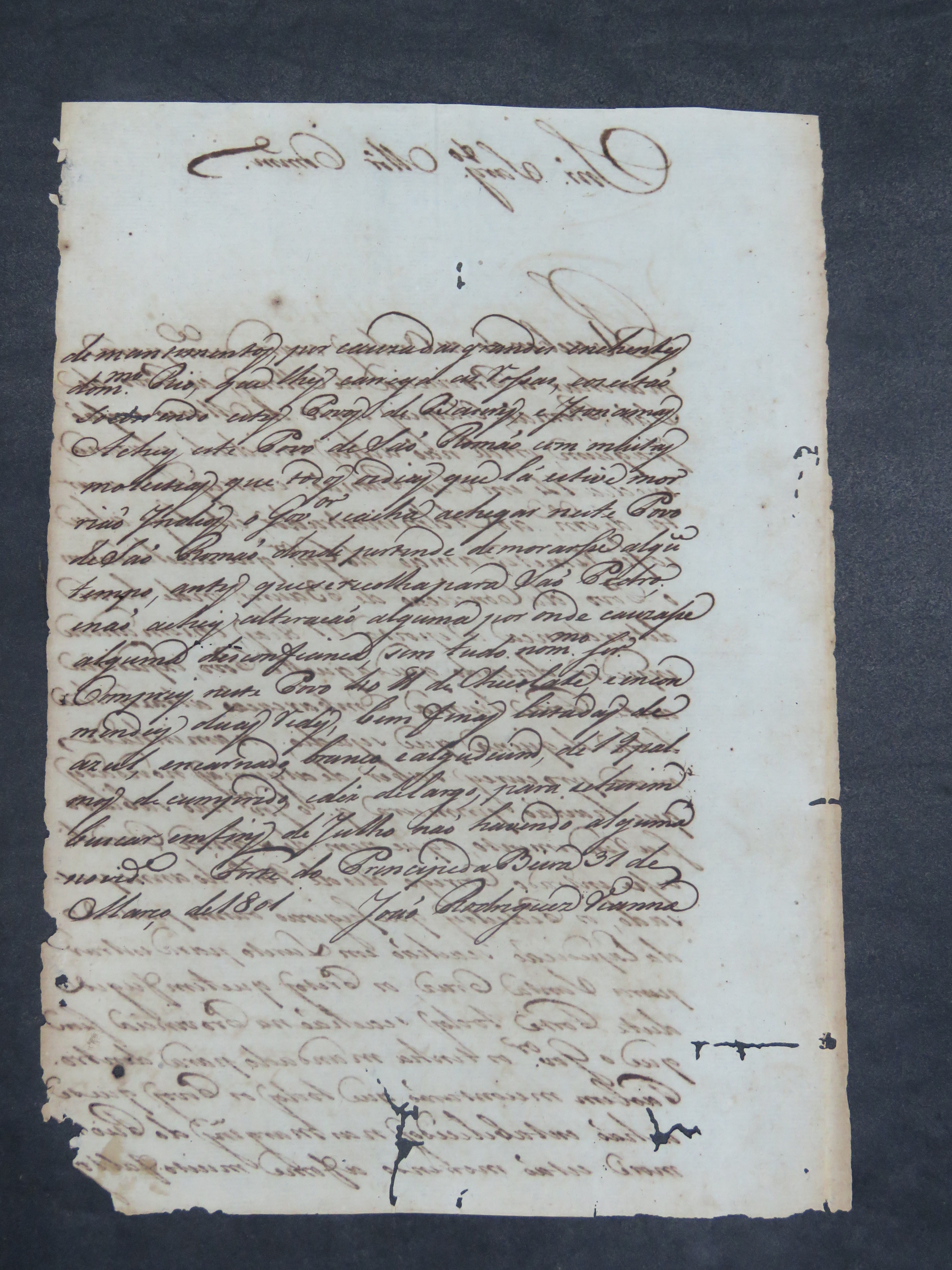CARTA de João Rodrigues Vianna ao Comandante do Forte Príncipe da Beira [Joseph Manoel Cardoso da Cunha].