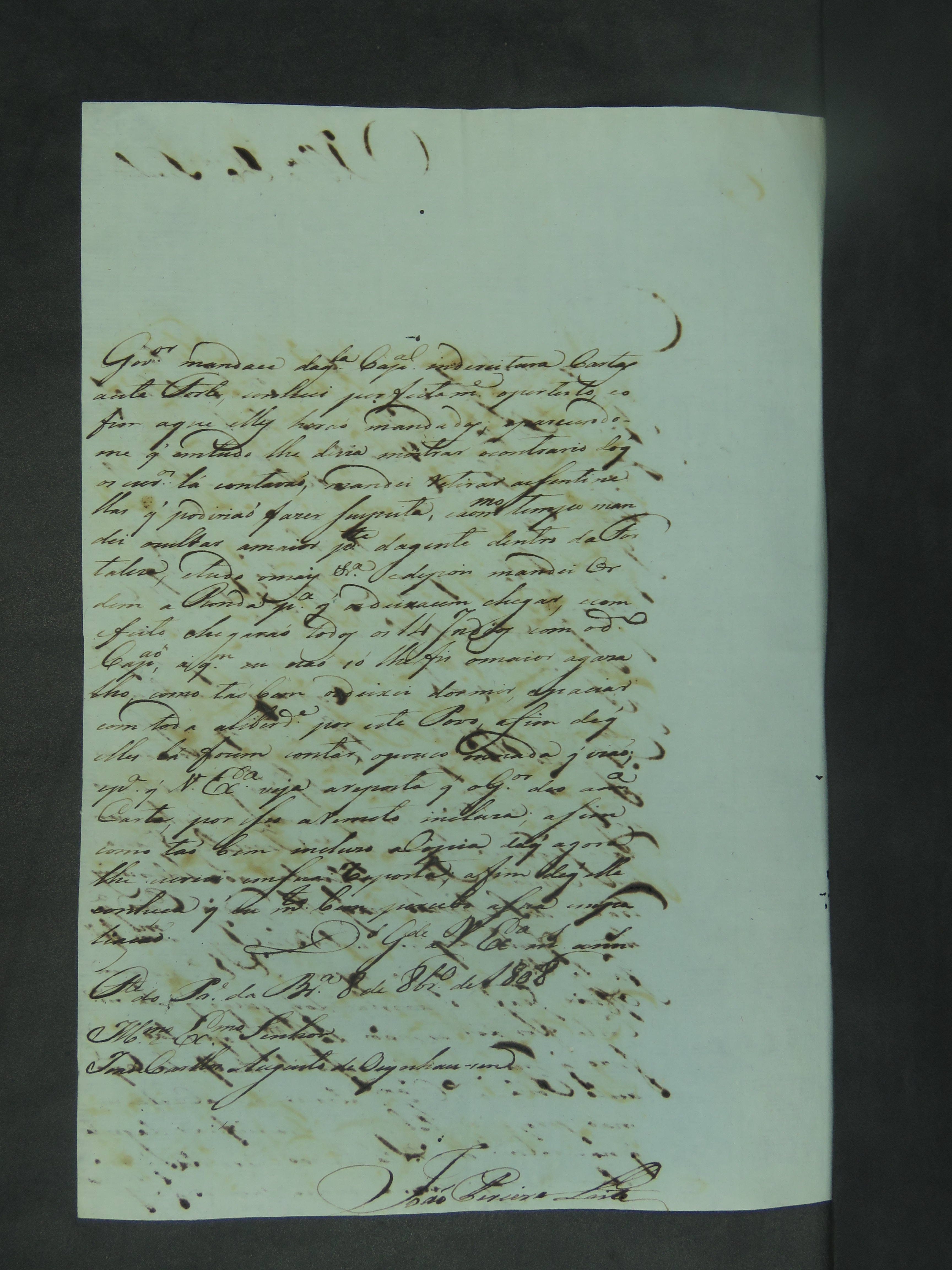 CARTA do [Alferes] João Pereira Leite ao [Governador e Capitão-General da Capitania de Mato Grosso] João Carlos Augusto de Oeynhausen e Gravemberg.