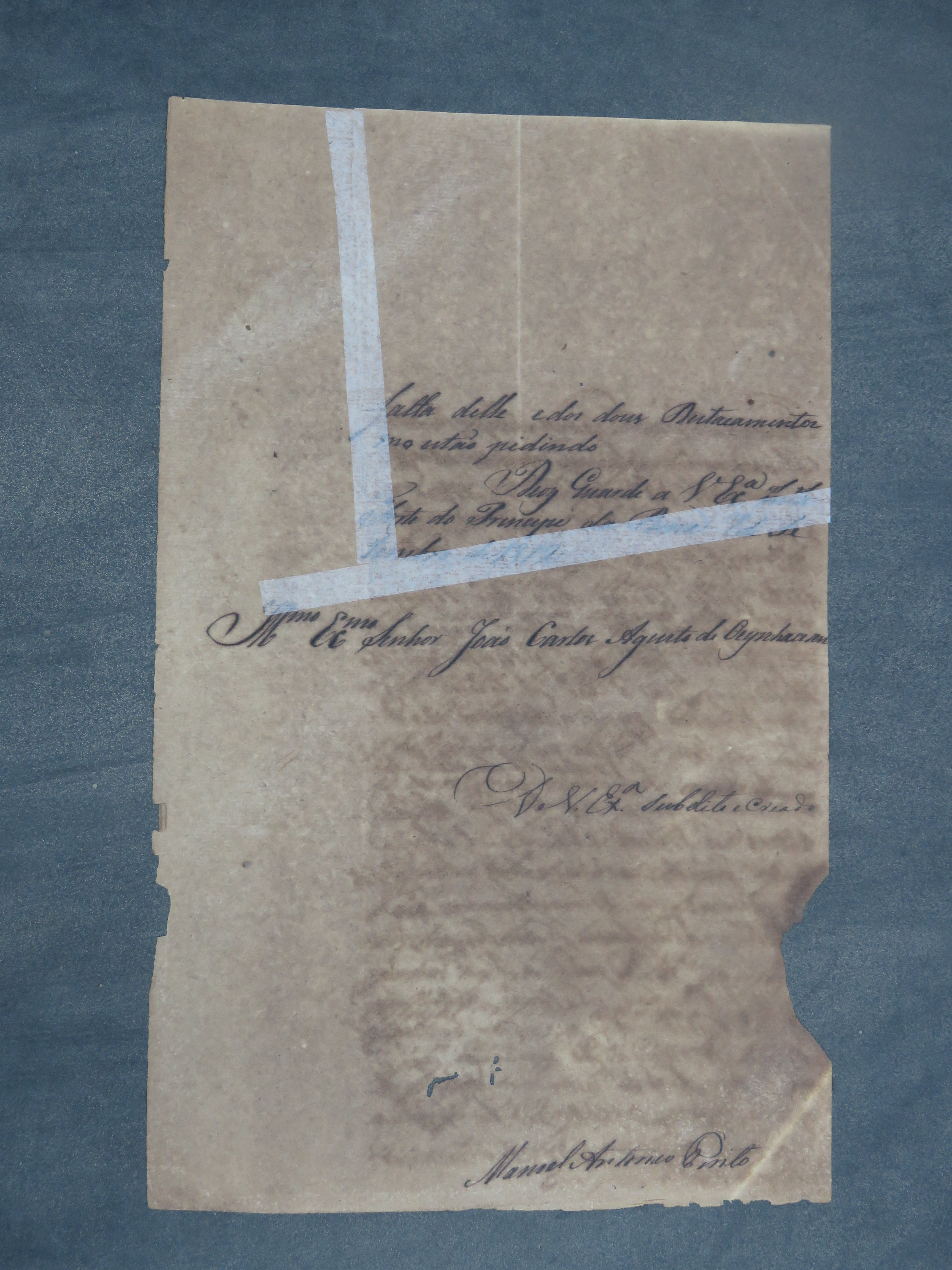 CARTA do [Sargento Mor Comandante do Forte Príncipe da Beira] Manoel Antônio Pinto ao [Governador e Capitão General da Capitania de Mato Grosso] João Carlos Augusto d' Oeynhausem e Gravemberg.