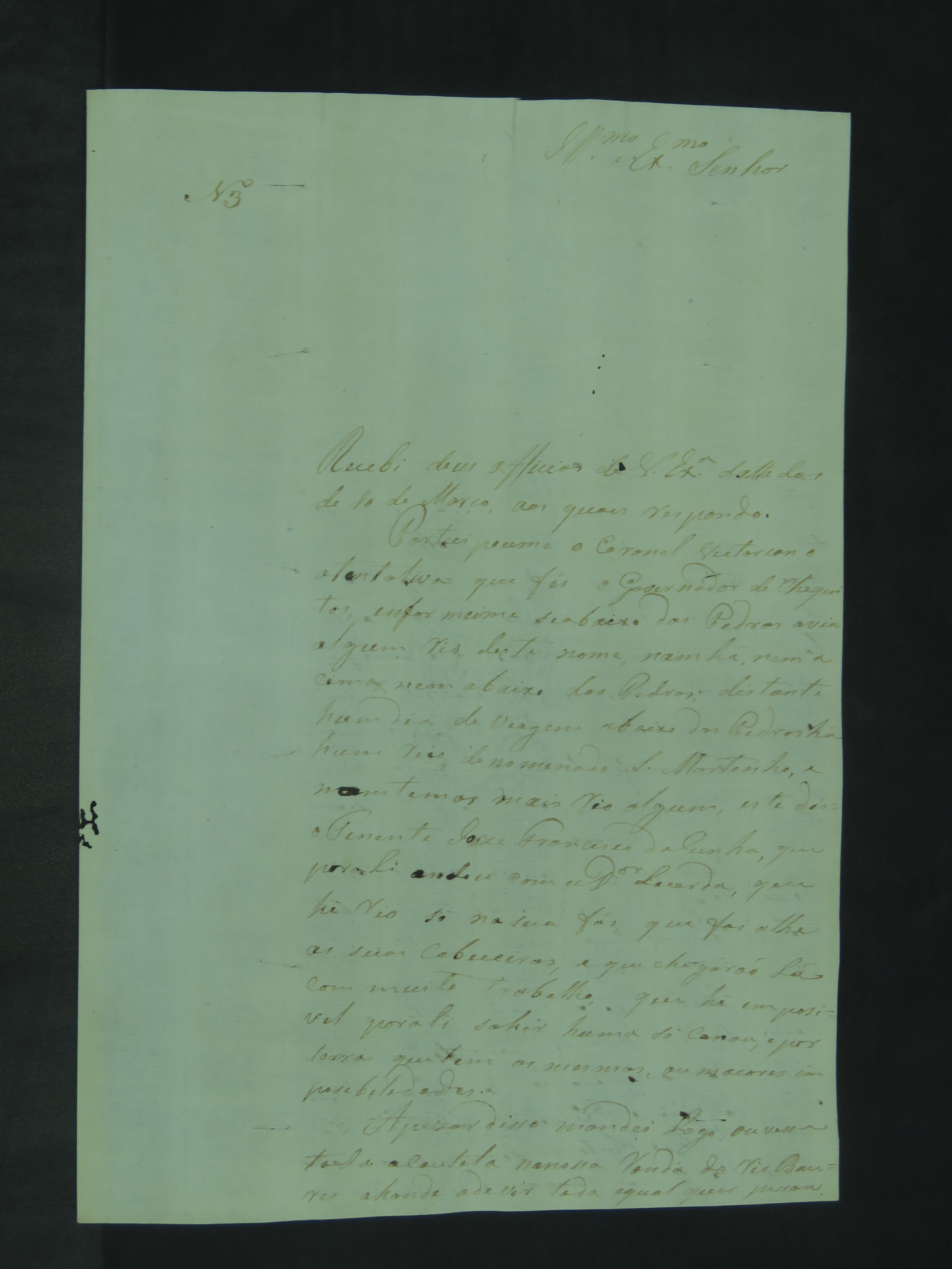 CARTA do [Comandante Geral] Manoel Antônio Pinto ao Governador e Capitão General da Capitania de Mato Grosso João Carlos Augusto d' Oeynhausem e Gravemberg.