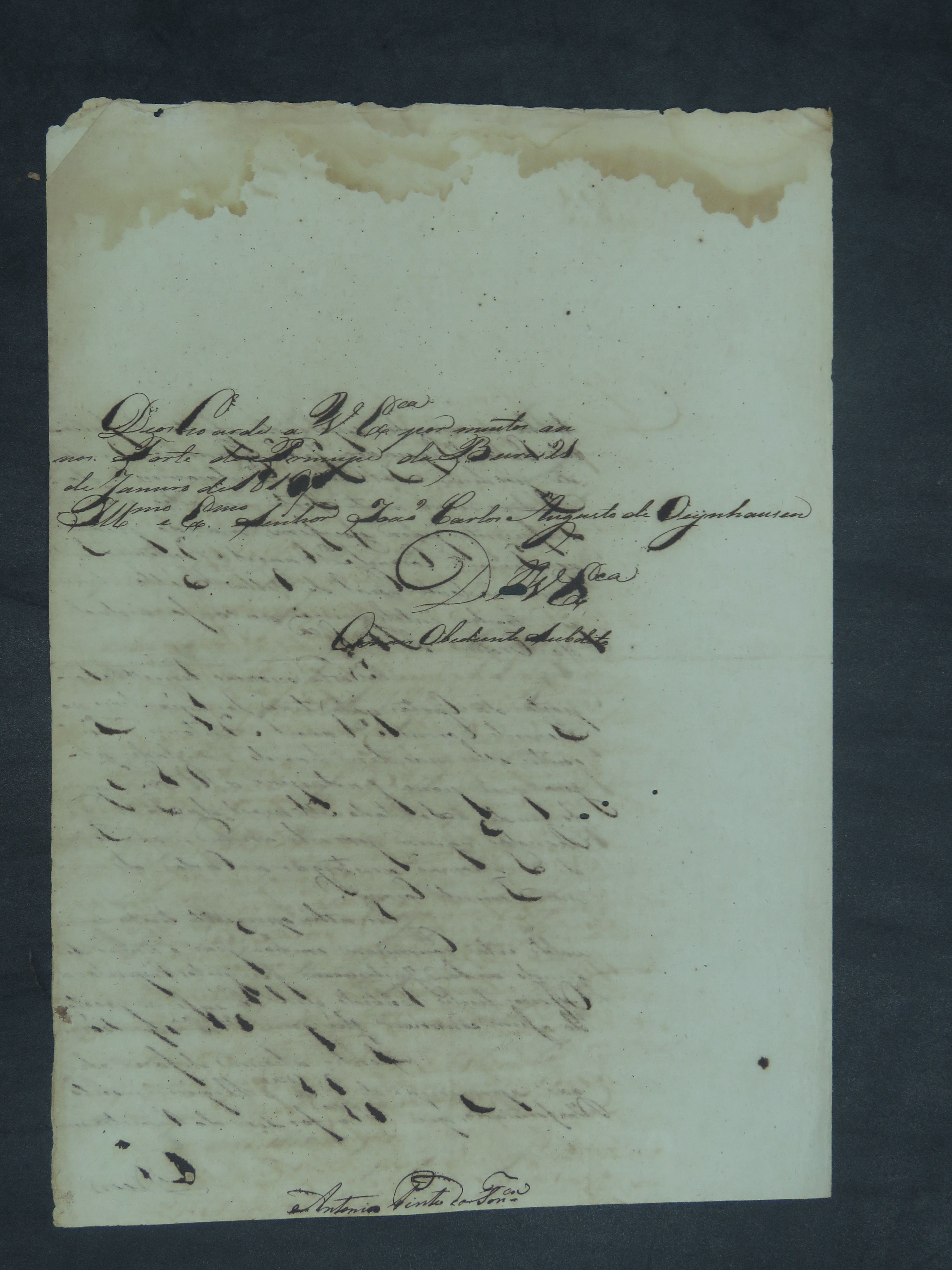 CARTA do [Comandante Geral] Antônio Pinto da Fonseca ao Governador e Capitão General da Capitania de Mato Grosso João Carlos Augusto d' Oeynhausem e Gravemberg.