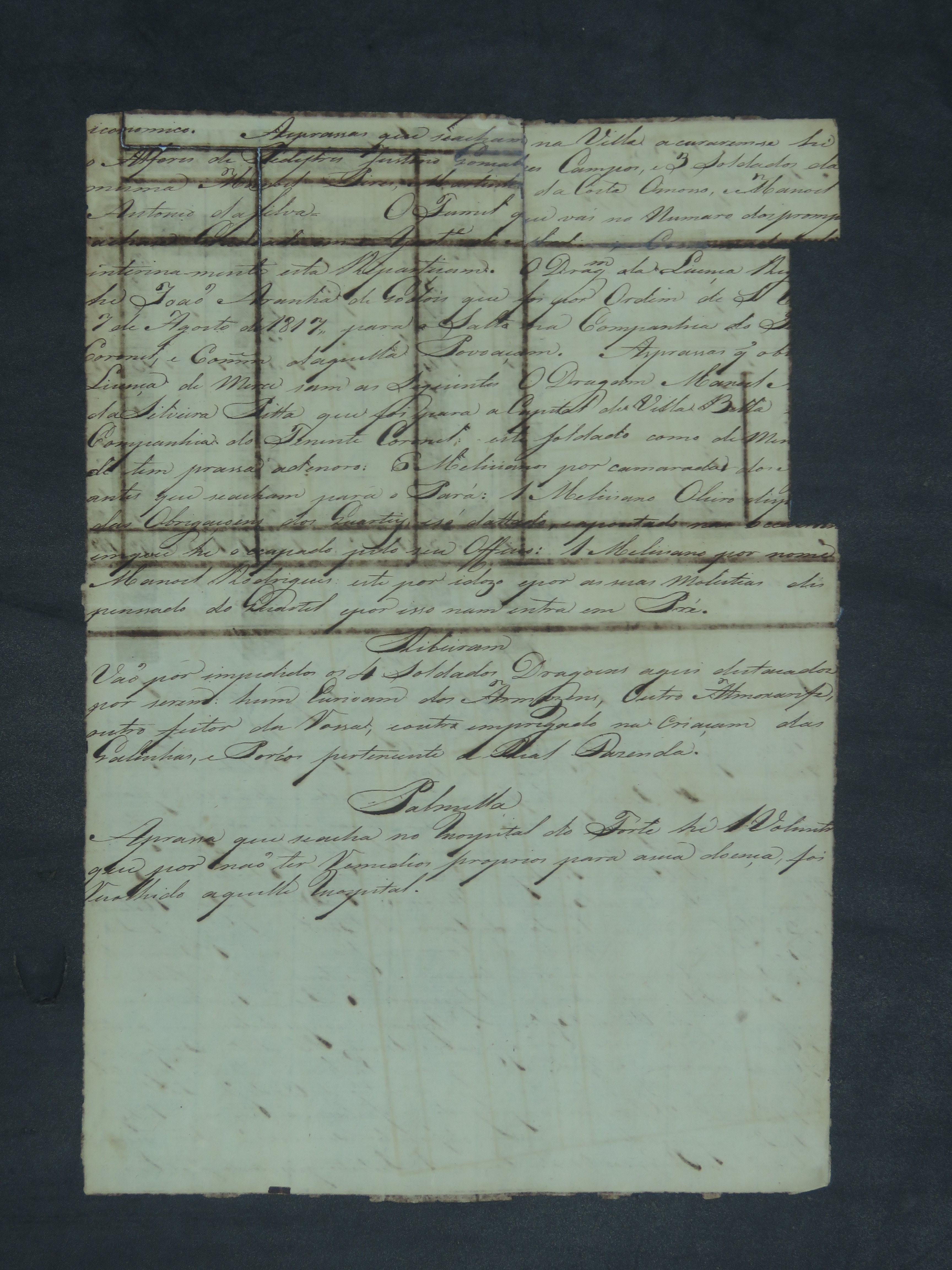 MAPA (incompleto) de Militares que se encontravam no Real Forte Príncipe da Beira