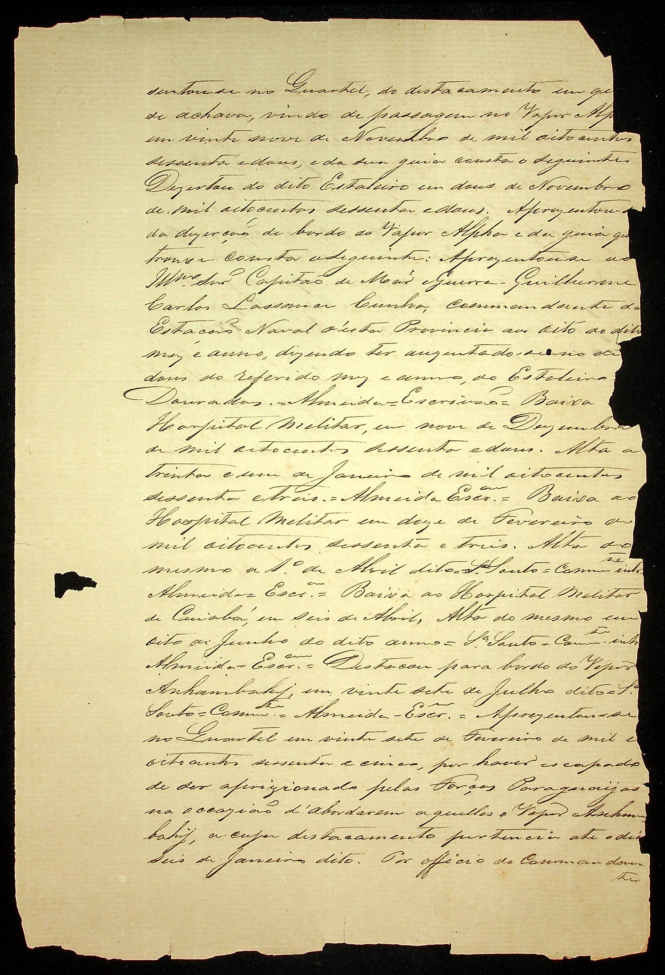 CÓPIA AUTÊNTICA dos Assentamentos de Praça do Oficial de Fazenda José Manoel d’Almeida e Vista do Comandante Interino.